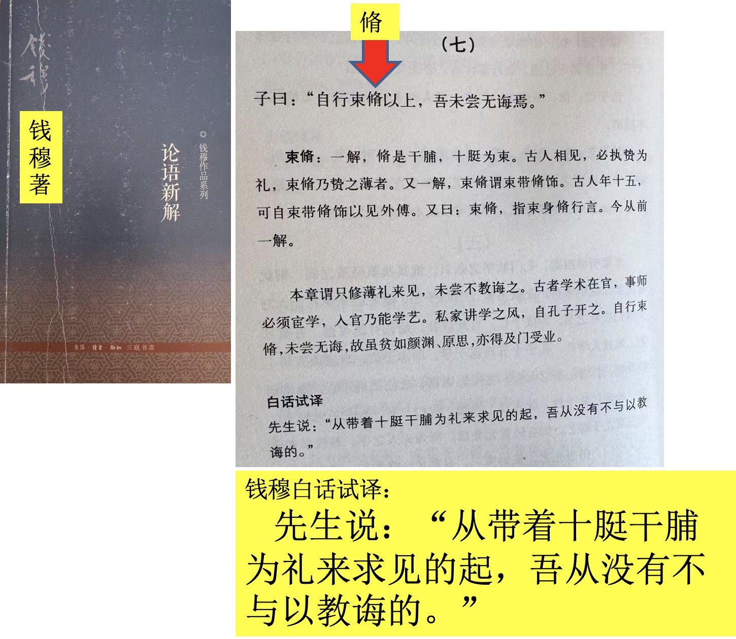 关键词:束修 干肉 学费 孔子 论语 年龄 杨伯峻 钱穆