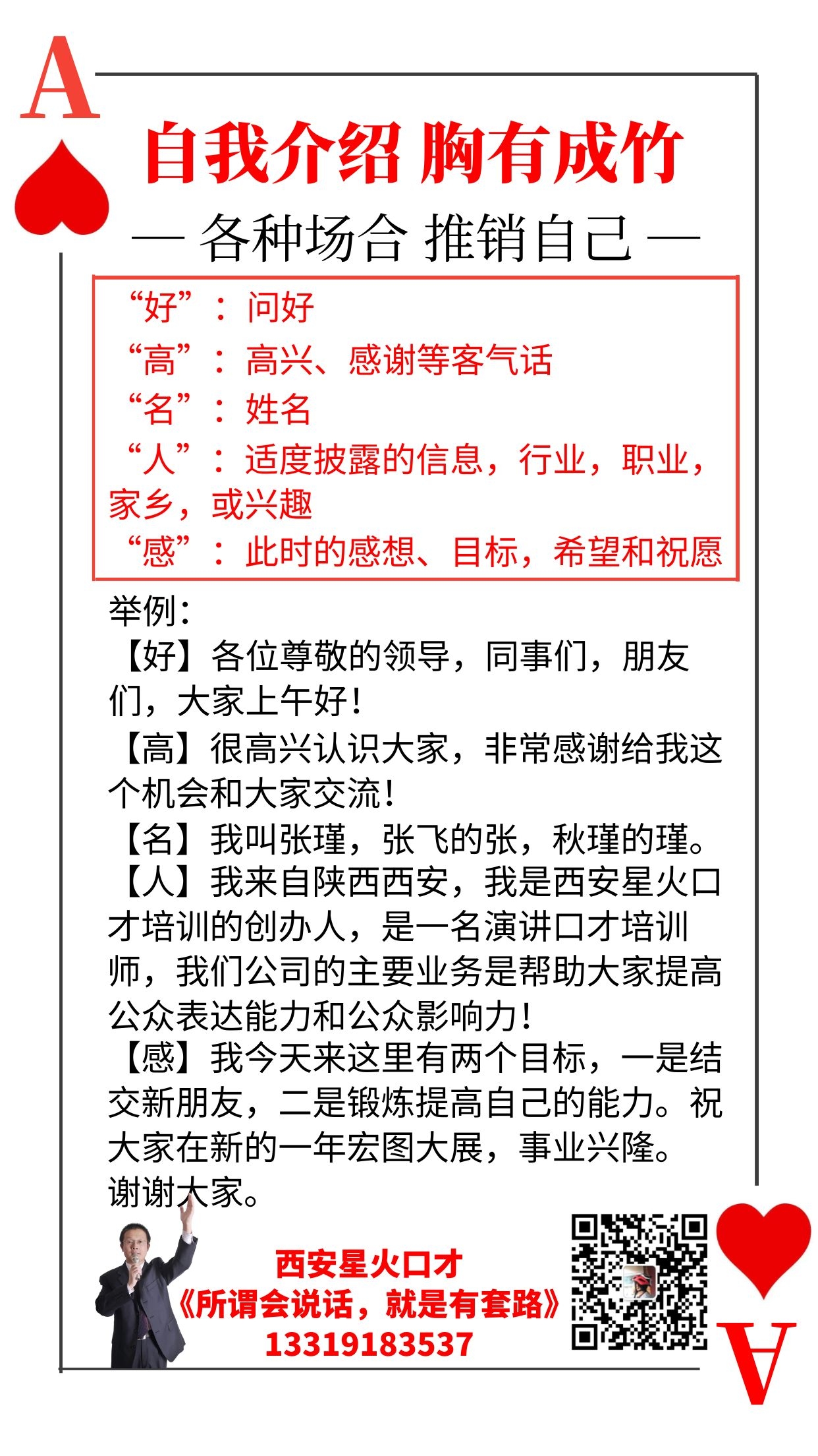 52个方法破解“讲话难”之一:红桃A 自我介绍及讲话底层逻辑