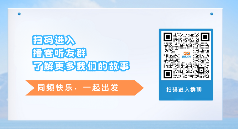 扫码进入播客听友群,了解更多行走20岁有趣故事!