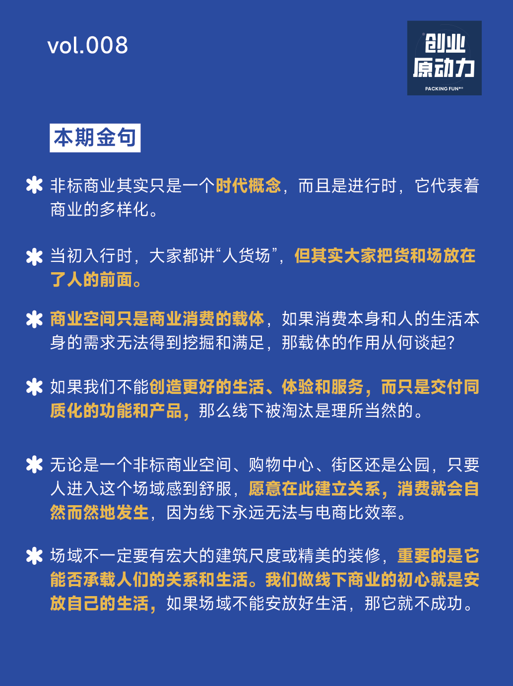 回到我们这次的播客主题,在目前的线下商业环境下,聊聊商业市场环境发展轨迹和当下线下商业零售,存量更新的困境与破局,以及非标商业的创新运营,我们关心的线下实体商业的未来。实体店的核心价值已从“交易终端”转向“体验媒介”,构建与电商共生的差异化壁垒。线下场景的困境,本质是“人”的缺位,线下场景的不二法门,看似繁荣的“物”背后,却是与真实生活的割裂、与情感共鸣的疏离。社群的力量,社群运营在商业里的激活价值,线下社群运营的破局逻辑,就在于将“人”重新置于场景核心——从单向展示转向多方共创。