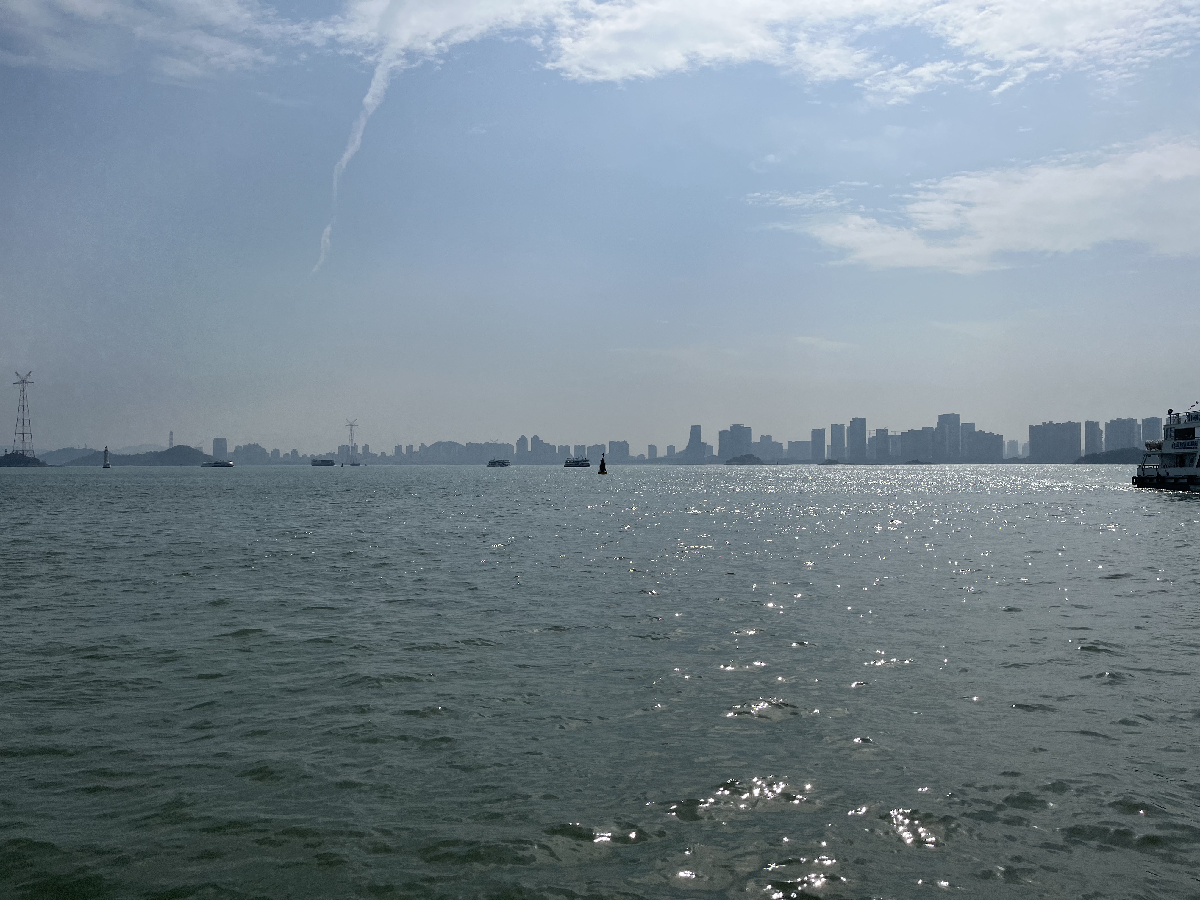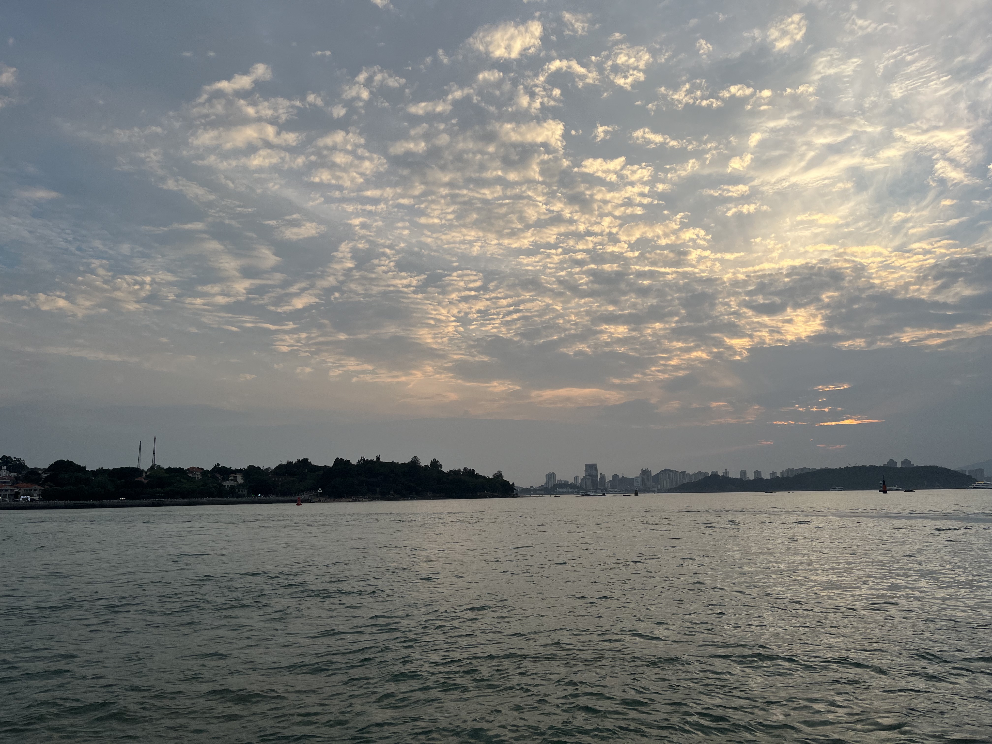 从三丘田码头回到对岸,下船前,看到的美丽天空
