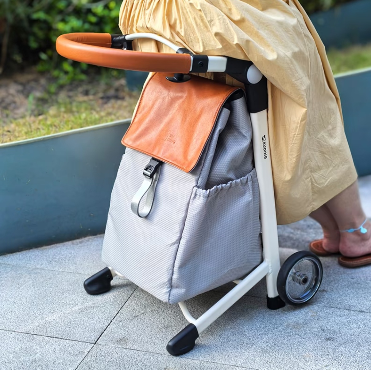 徐帆分享了两个例子,她的几位转行的朋友们在做的事:设计全龄友好的时髦服装、原本设计摩托车的两位年轻男孩在设计拉杆车