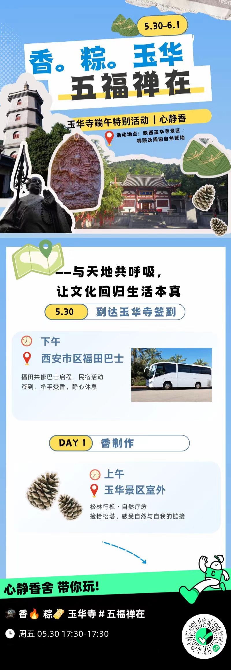 🌿 报名端午疗愈活动:添加心静香微信yangjing41343,备注「玉华寺」& 粗门海报扫码。