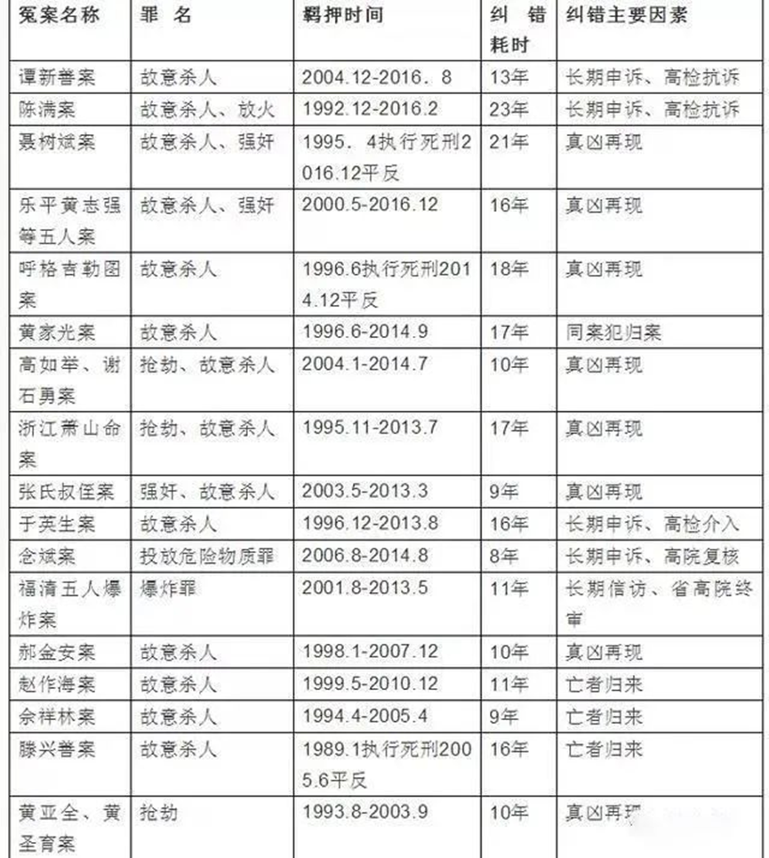 北大法律信息网整理了一份90年代以来咱们国家影响较大的冤案