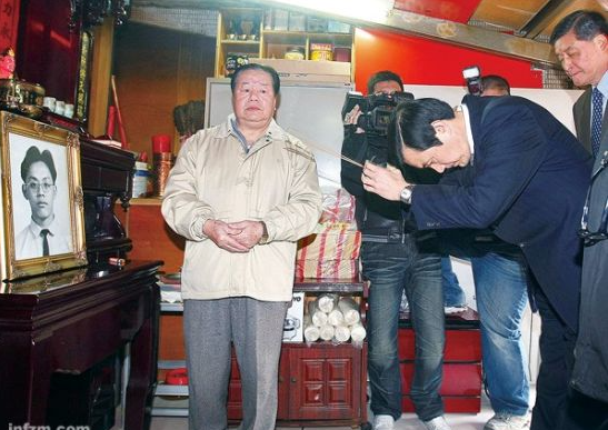 图为马英九慰问江国庆家属