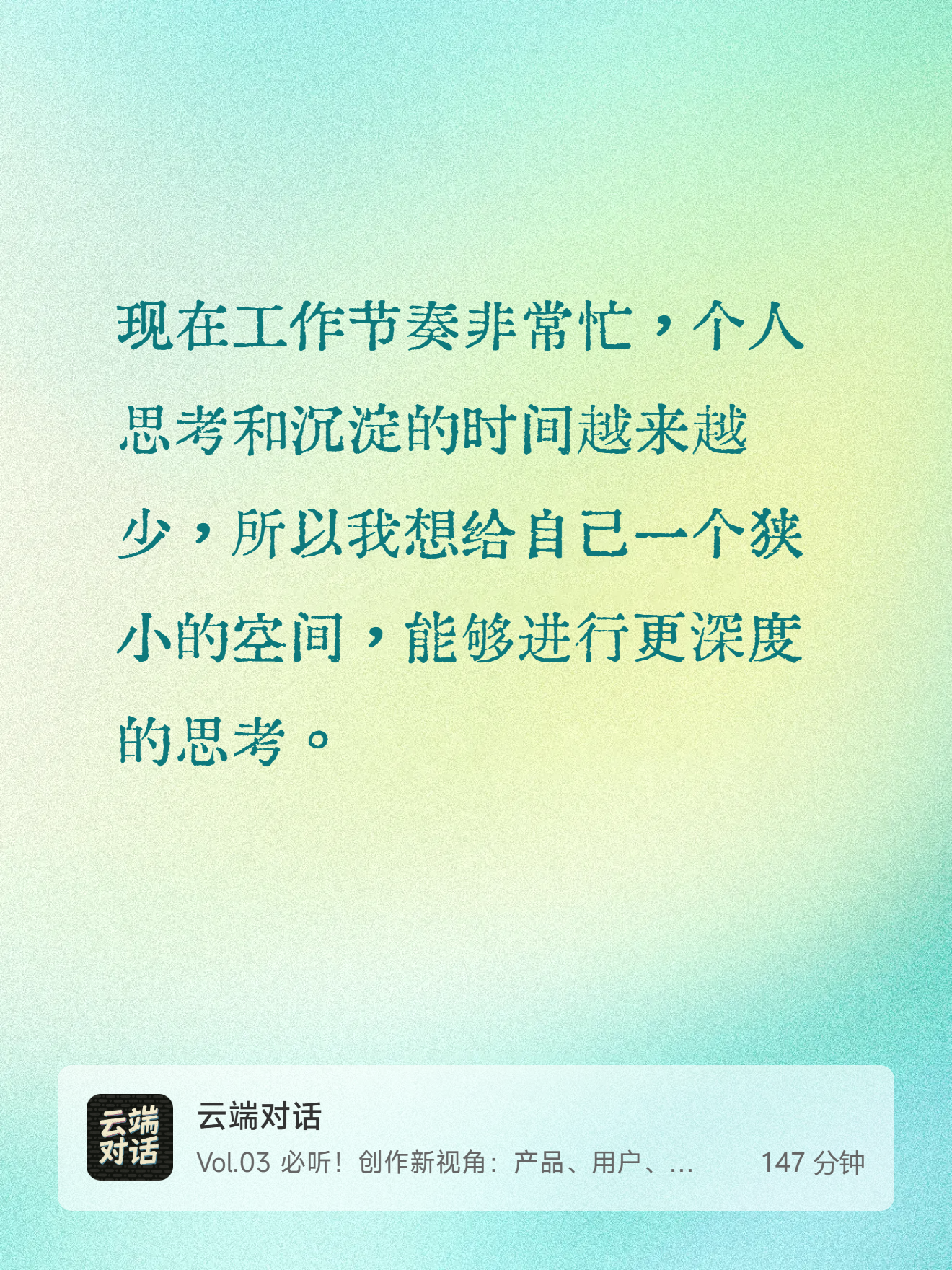 收听:苹果播客|小宇宙|Spotify搜索「云端对话」
