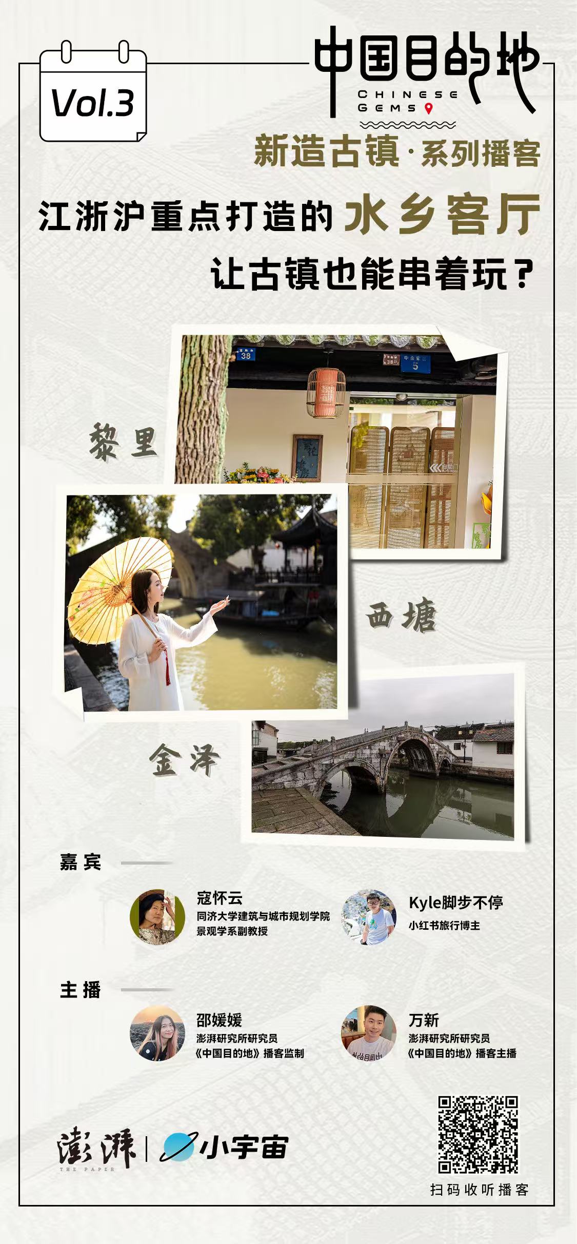 《中国目的地》推出“新造古镇”播客系列,探讨有哪些新玩法,能够让古镇如何不会在标准化开发的浪潮中逐渐哑声,让大众走出审美疲劳,重新爱上古镇。