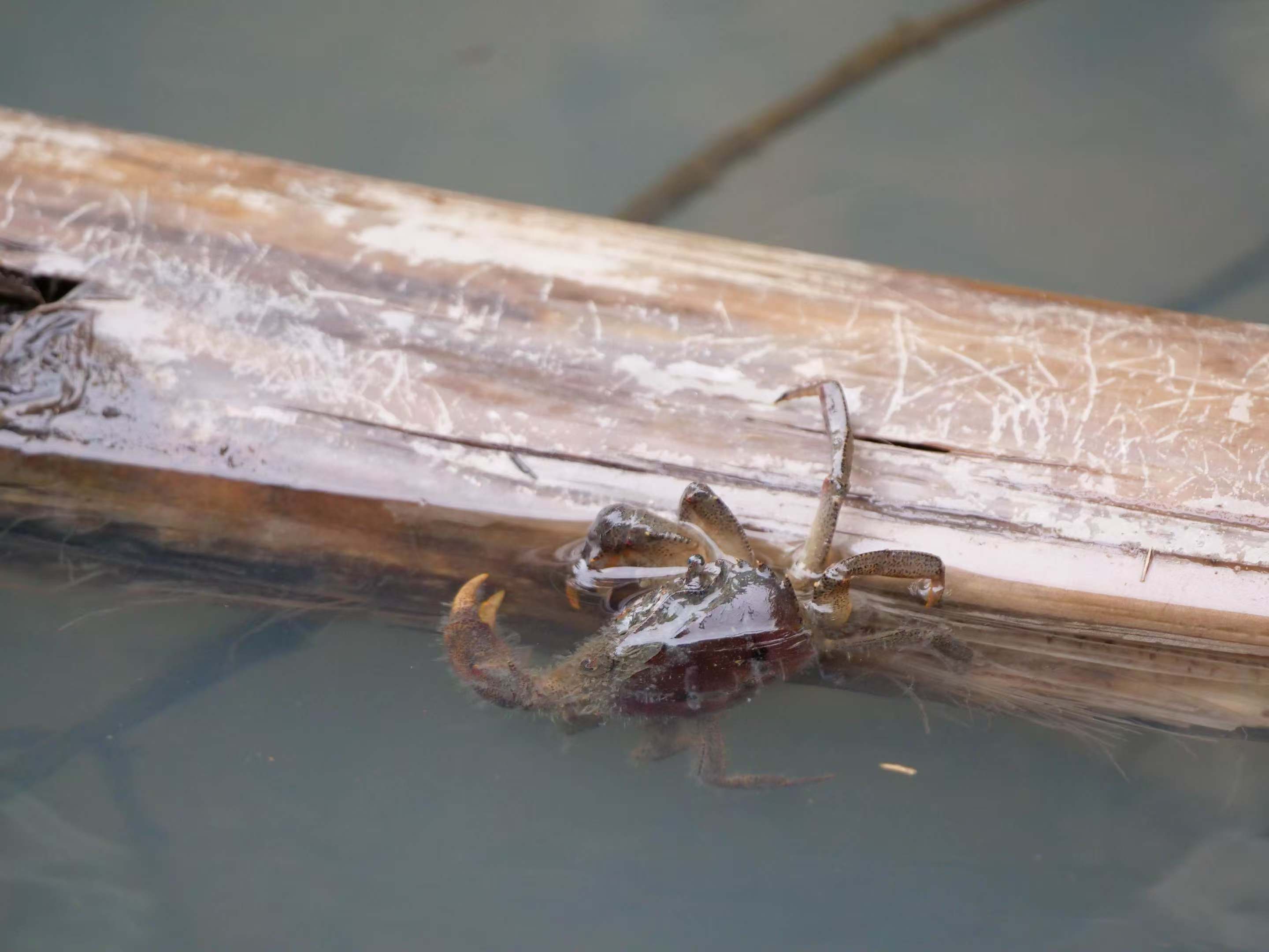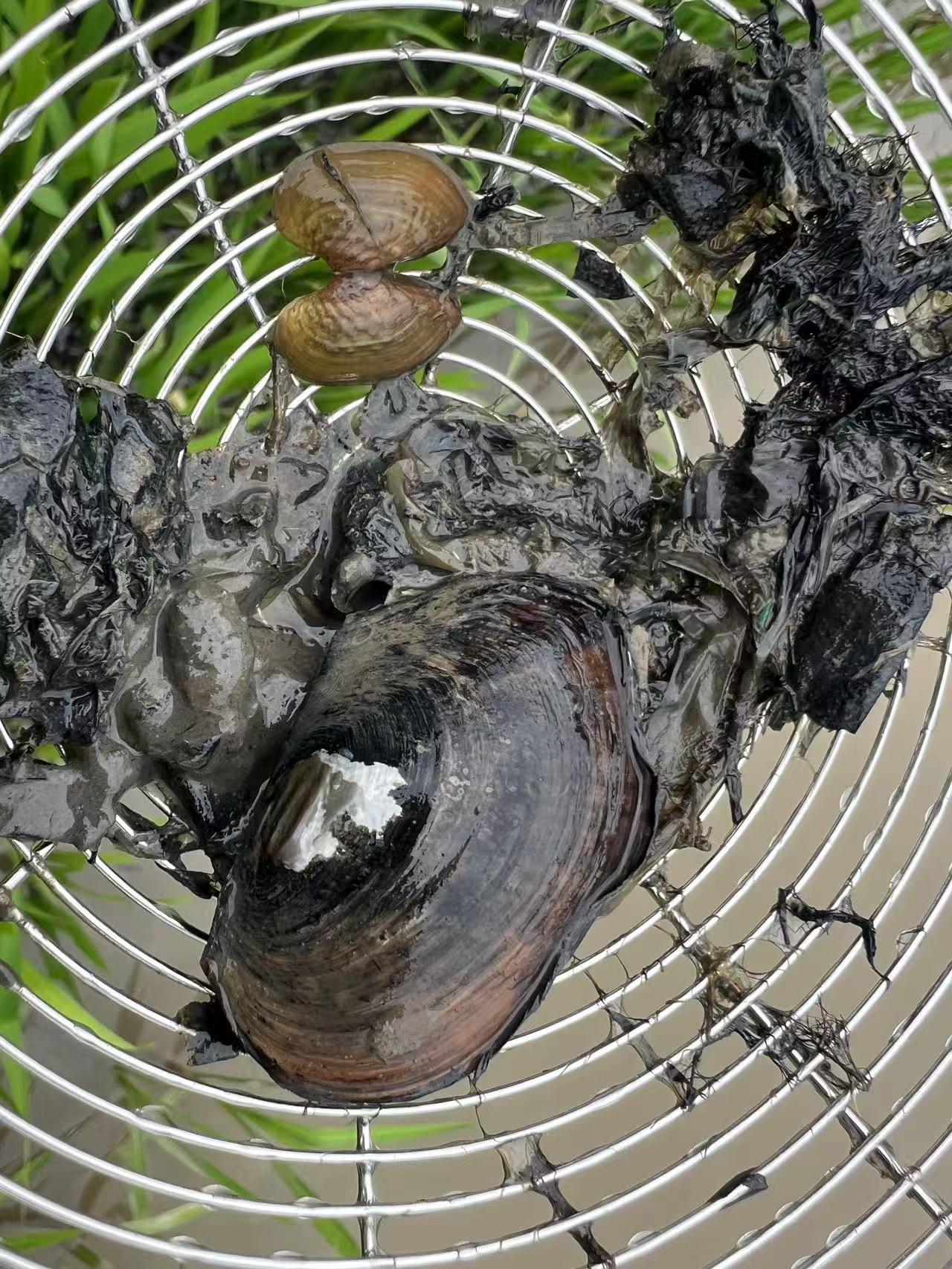 河的对岸是生态环境更丰富的地方。我找到了河蚬。然后也有很多刚才提到的斜粒粒蜷,以及是一种比它更扁一些的螺。刚才卢老师说是这都是本地人类的食材,我应该也可以吃吧…