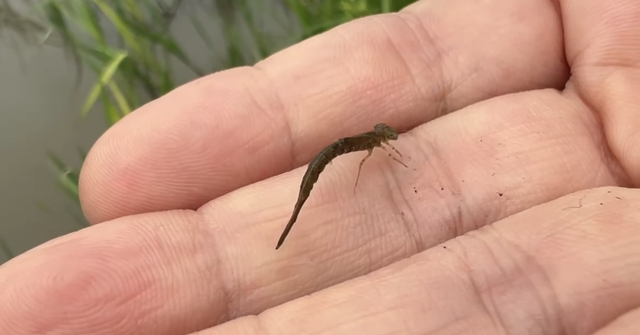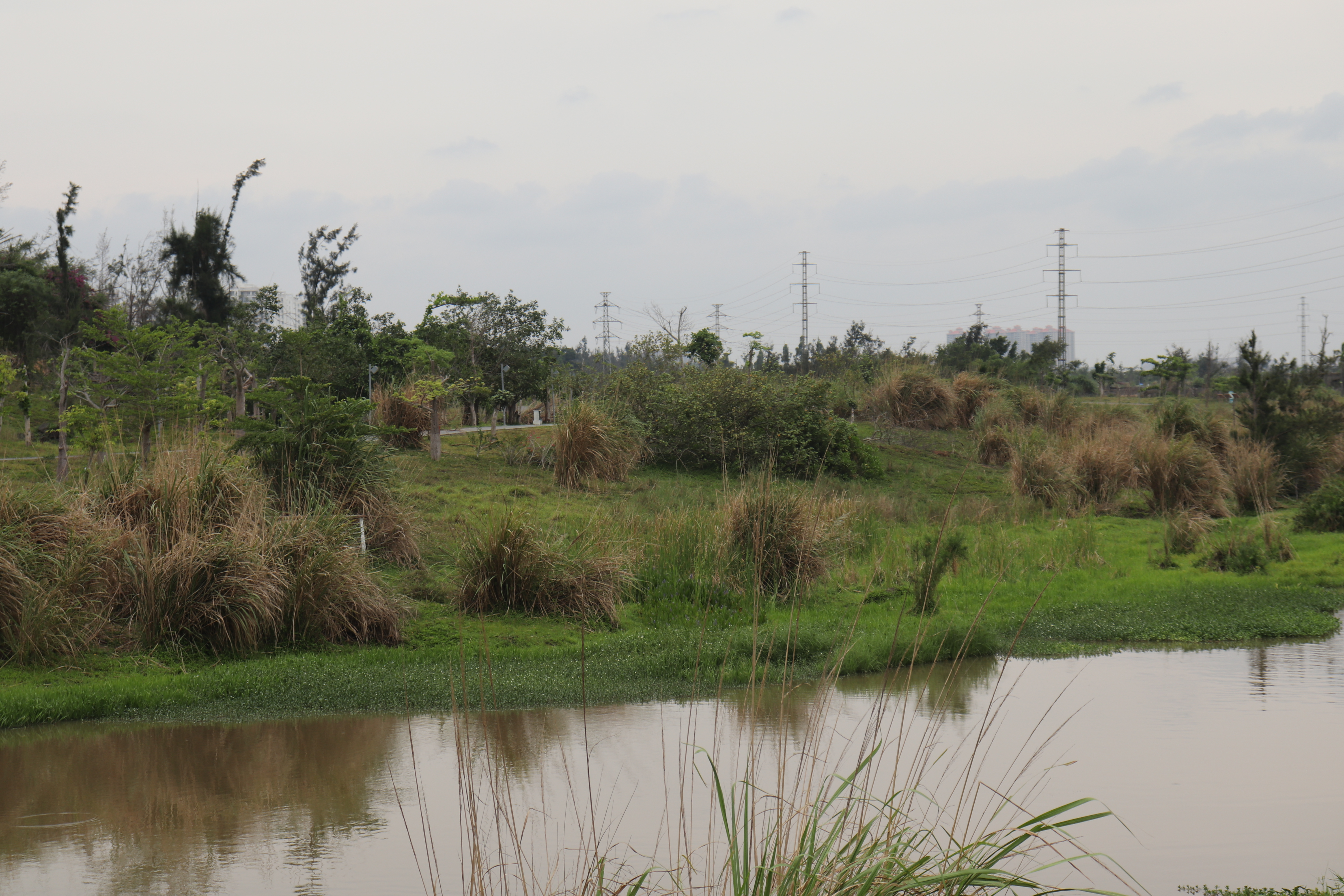 还看到了很多的豆娘和蜻蜓,然后发现了蜻蜓的幼虫——水虿。两岸主要生长的是一些斑茅,淡红树林里有长得像黄槿的植物。然后从对岸传来了噪鹃四声杜鹃的叫声,地上有成片的含羞草。