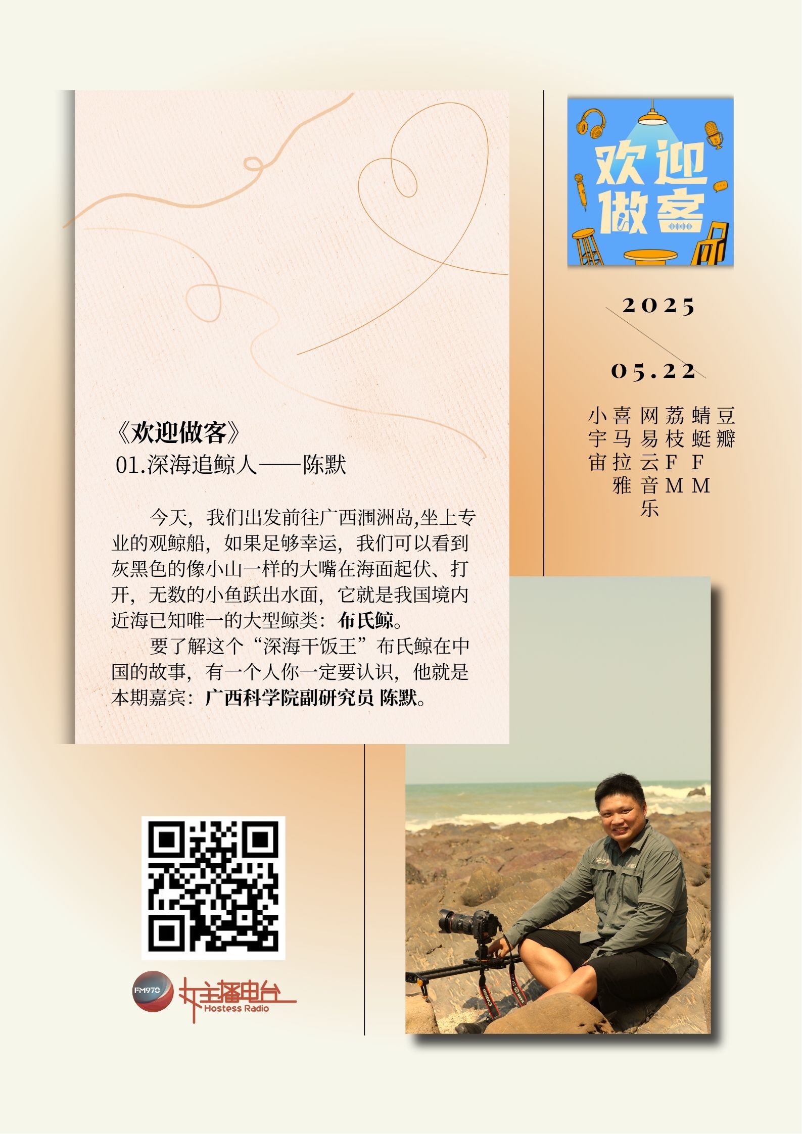 地球表面上约29%的面积是陆地,剩余71%为海洋。在这71%海洋的占比中,海水占比达到了惊人的97%,然而,迄今为止人类对这片广阔领域的探索仅限于5%。本期欢迎做客节目我们有幸邀请到了广西科学院副研究员——陈默,让我们化身深海追鲸人,一同登上观鲸船,一头扎进这神秘的海洋世界吧!