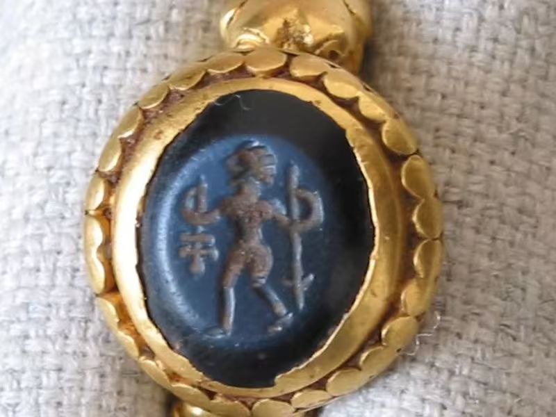 墓室壁画潦草却鲜活如生,战马与牛车颠倒错位,三只眼的夫人,还有未画笛子的乐工……像一场未完成的戏剧,但比史书更真实。混编的仪仗队,是北齐汉骨胡皮的缩影;波斯萨珊王朝的连珠纹饰,是文明交流的见证。但最惊人的发现是一枚蓝宝石戒指——宝石上阴刻古希腊英雄赫拉克勒斯,这枚戒指磨损严重,墓主常年佩戴,许是西域盟友所赠,暗示我们当时中西文化已深度交融。