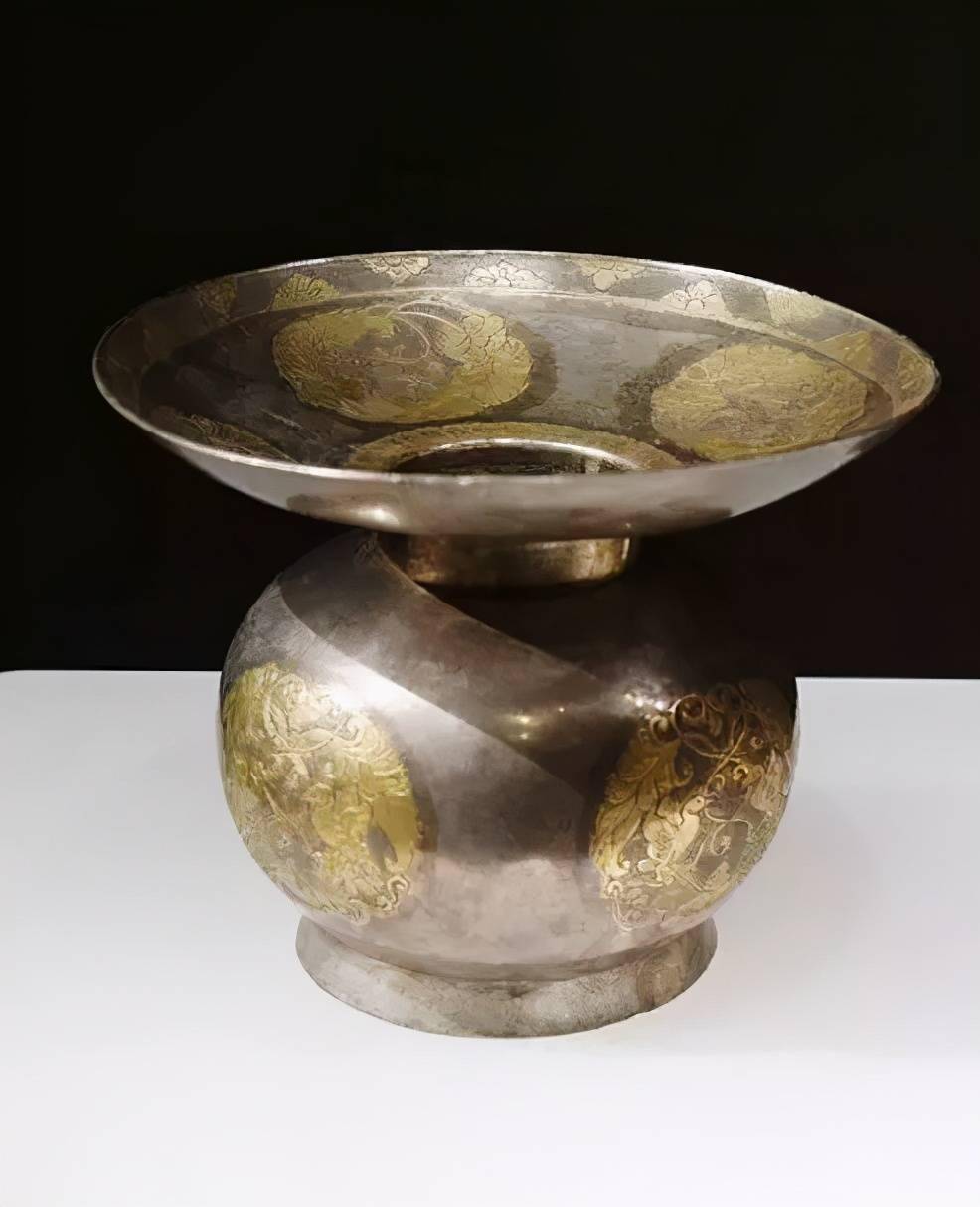 摩羯纹金花银碗