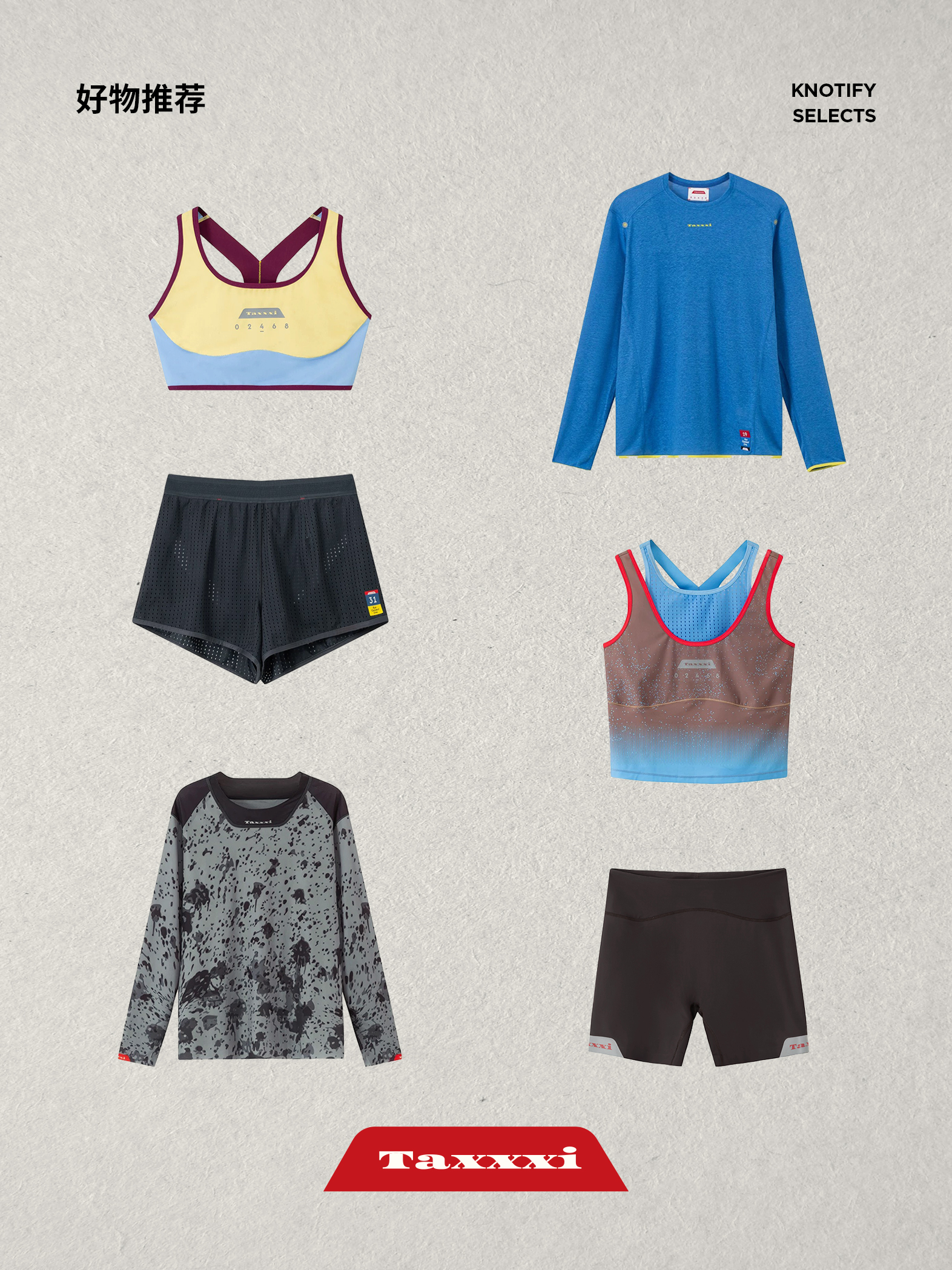 Taxxxi RUNNING (中文称为太可喜跑步公司),是由太喜欢跑步的时装设计师常梦于2024年创建的运动时装品牌。通过她作为城市日常跑步人群的视角,设计衔接生活与运动的功能性服饰。Taxxxi 拥抱运动时的感受,也关注场外的生活,希望以明快的设计特点,调和服饰中功能与日常之间的冲突,满足城市背景下多场景的穿着需求。