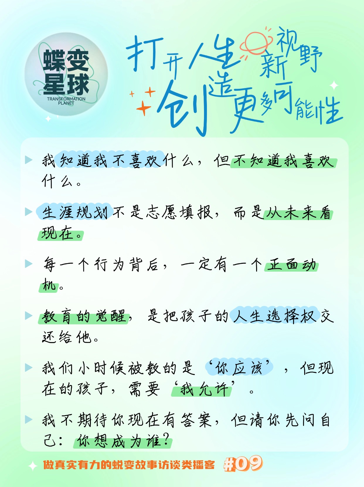 面对越来越多孩子“我不想上学”的呐喊,家长焦虑、学校施压、孩子沉默,本期《蝶变星球》邀请清华心理学硕士、生涯教练晶晶,共同探讨如何通过职业生涯规划,缓解高考焦虑、修复亲子关系、看见孩子的真实需求。当教育的终点不再只是分数,我们能否真正把人生的选择权,交还给孩子?