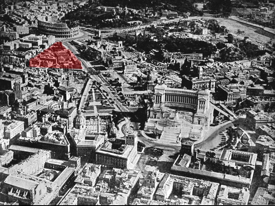 032.维托里亚诺建设工程对于原有历史环境的扰动(以1870年罗马地图为底图)