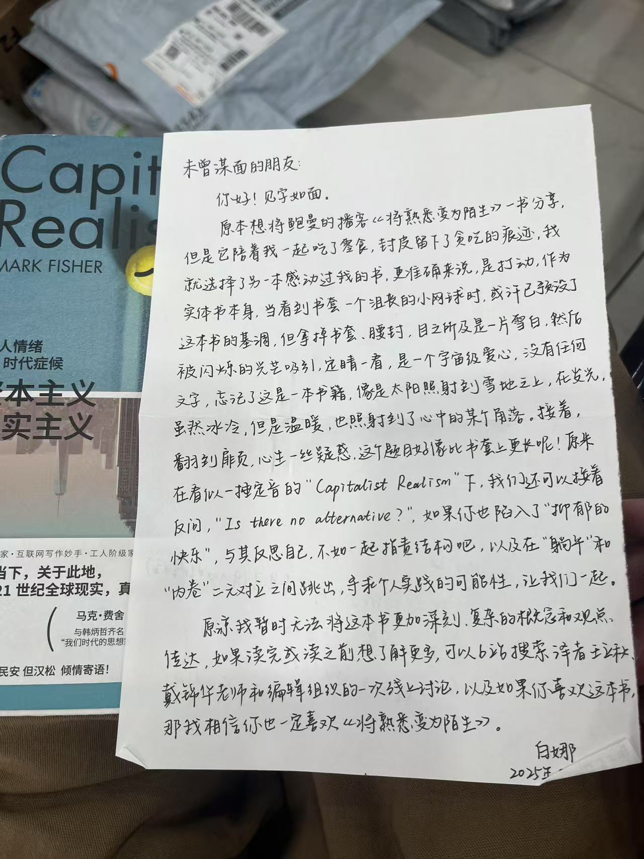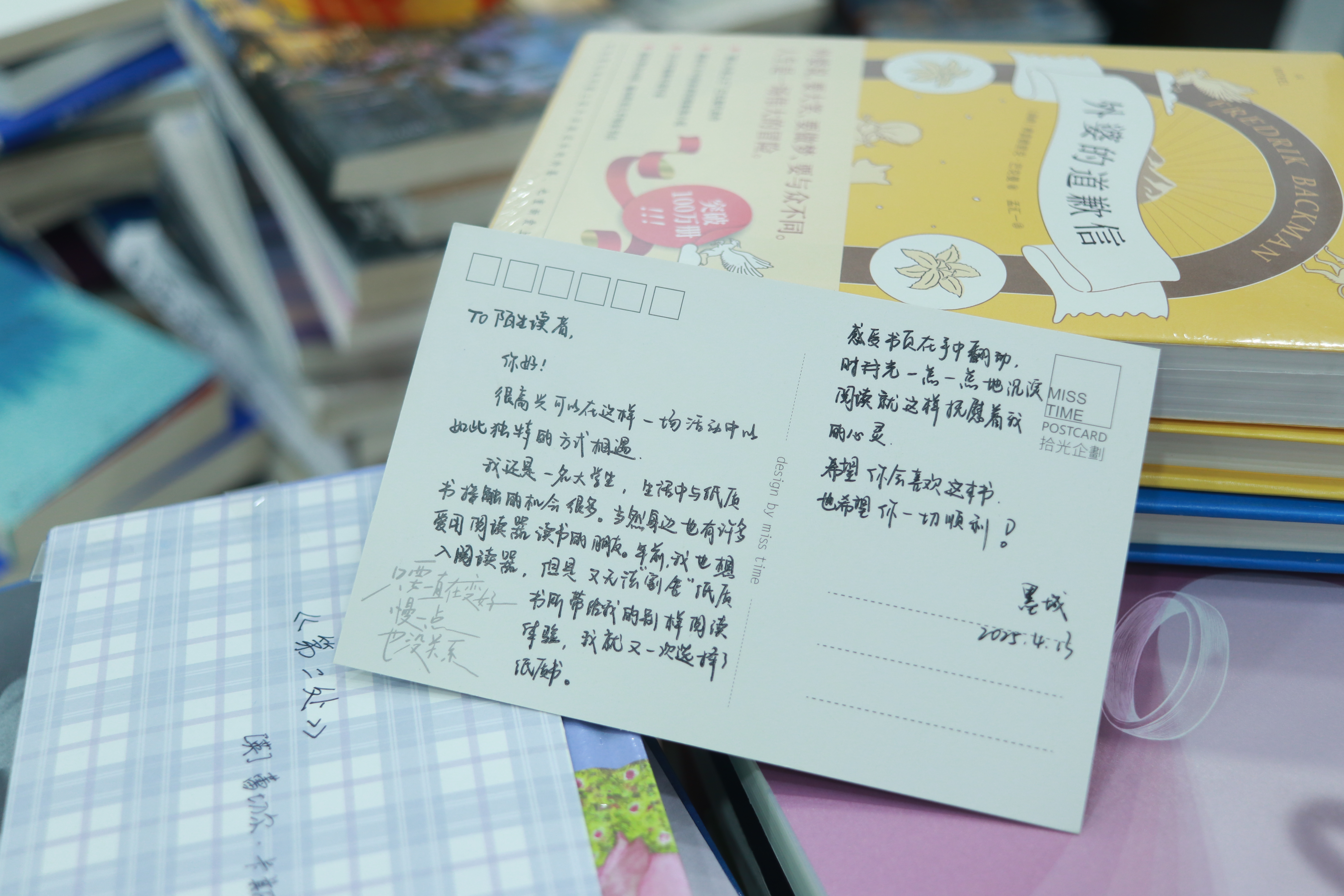 4月10号,南方周末举办了一场面向所有读者的书籍交换活动,参与者将书籍寄往编辑部,会随机收到另一位陌生读者的书,还可能附带手写信件贺卡等意想不到的惊喜,形成“思想漂流”。