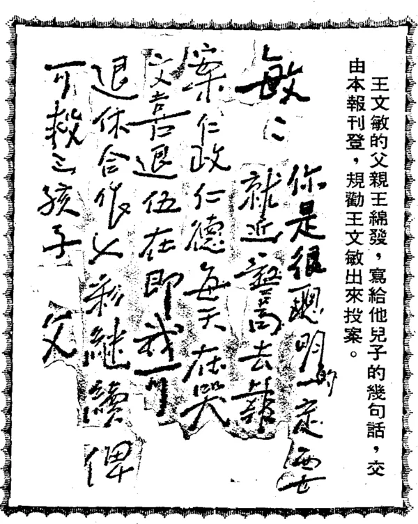 王文敏父亲劝投信