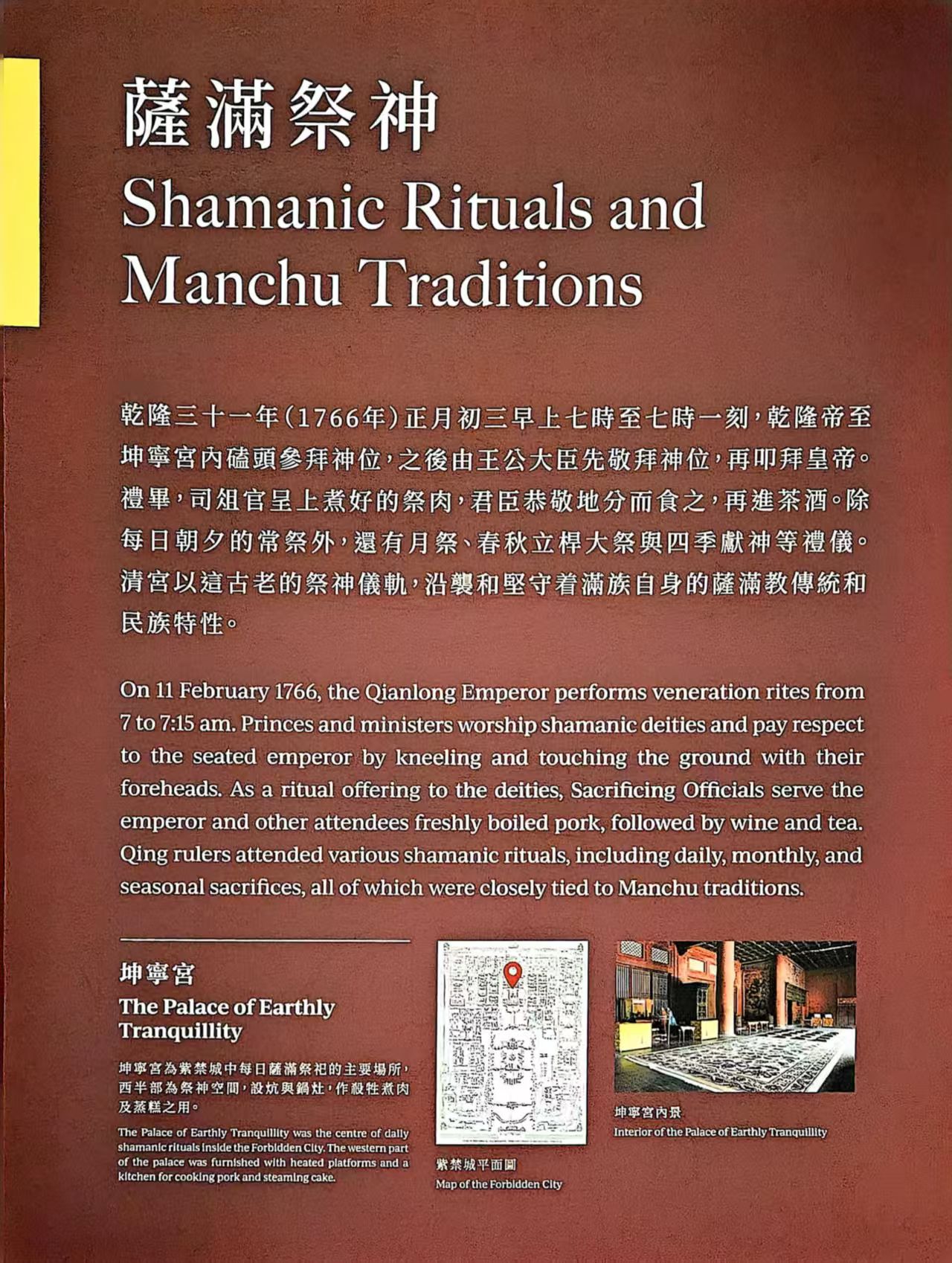 2:58:53 【彩蛋】——来自于香港故宫文化博物馆“紫禁一日:清代宫廷生活与艺术”常设展览中,关于坤宁宫萨满祭神部分的音乐和展板信息。