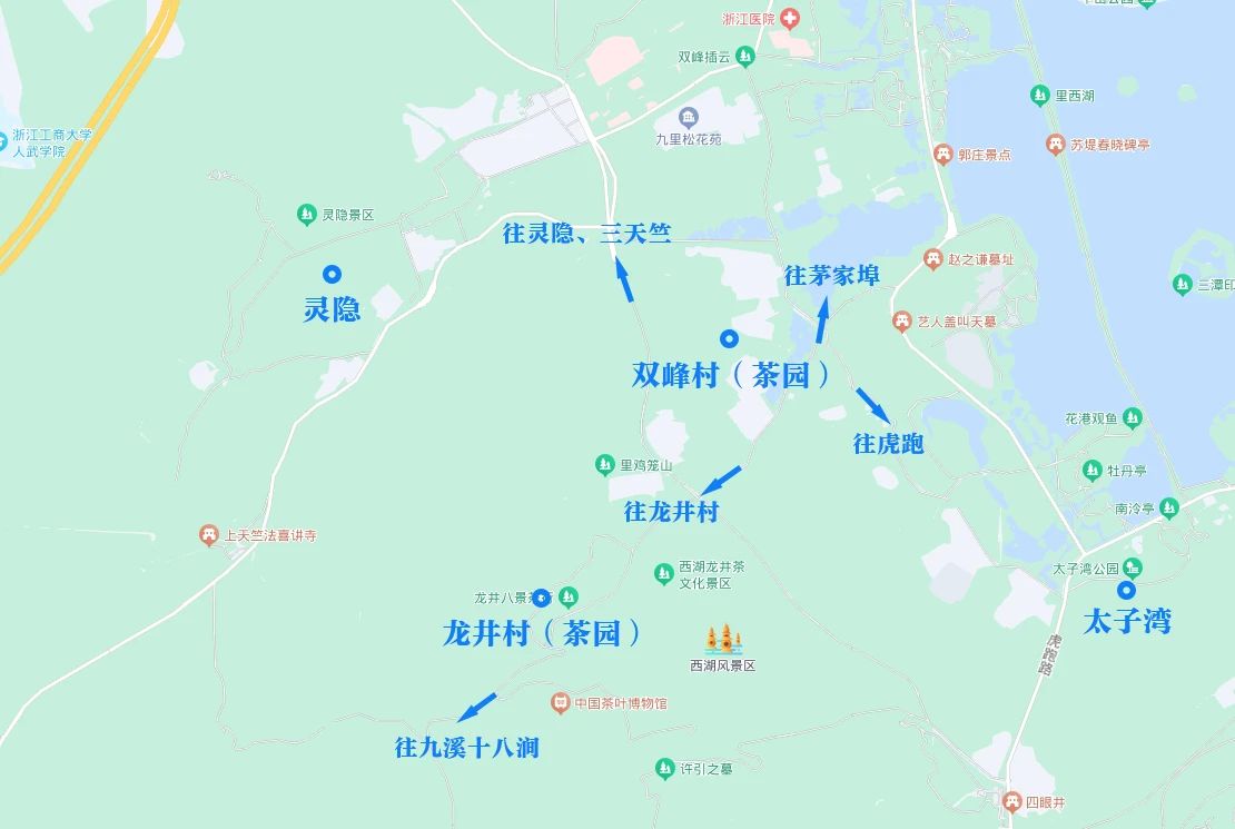 双峰村之所以叫双峰村,是因为它处于杭州比较有名的两座山——南高峰和北高峰之间,这个是可以追溯到乾隆时期了。南宋“西湖十景”之一的“双峰插云”说的就是这里,除了美丽的风景,双峰村还是本地有名的茶村,属于龙井茶一级核心产区,主要种植龙井群体种和龙井43号。