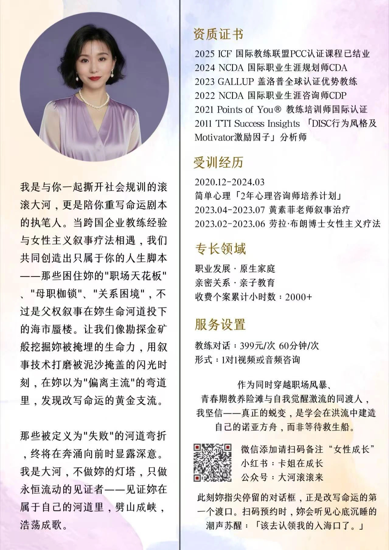 - “陪女性客户做的第一件事:把脑中的‘应该’全抓出来,挨个问——谁派你来的?”