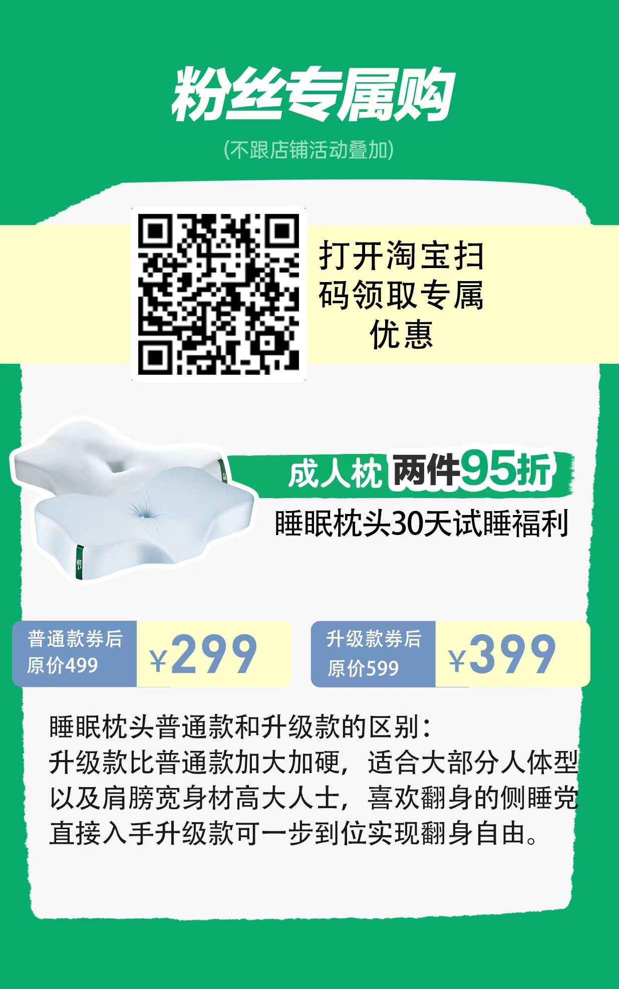 2、买双件枕头还可以享受券后95折优惠,相当于再便宜30元左右。