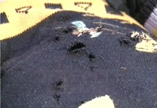 图为吕钰遇害时所穿衣物,胸口被扎多刀