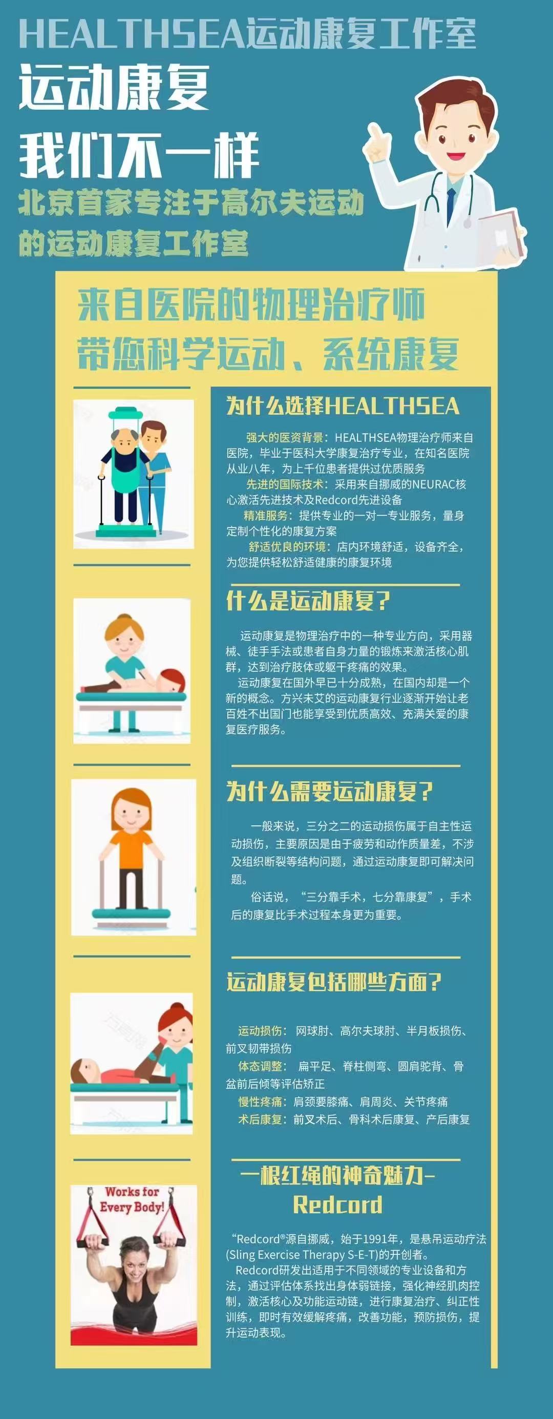 于海洋,哈尔滨医科大学康复治疗学专业毕业,自2013年至今在国家康复辅具研究中心附属康复医院任物理治疗师,现任主管治疗师、肌骨康复pt长,中国康复医学会水中治疗专业委员会委员。挪威红绳redcord悬吊neurac1、neurac2国际认证,节律性整脊国际认证,Healthsea运动康复工作室创始人,鸿禧国际高尔夫俱乐部运动损伤与康复顾问。