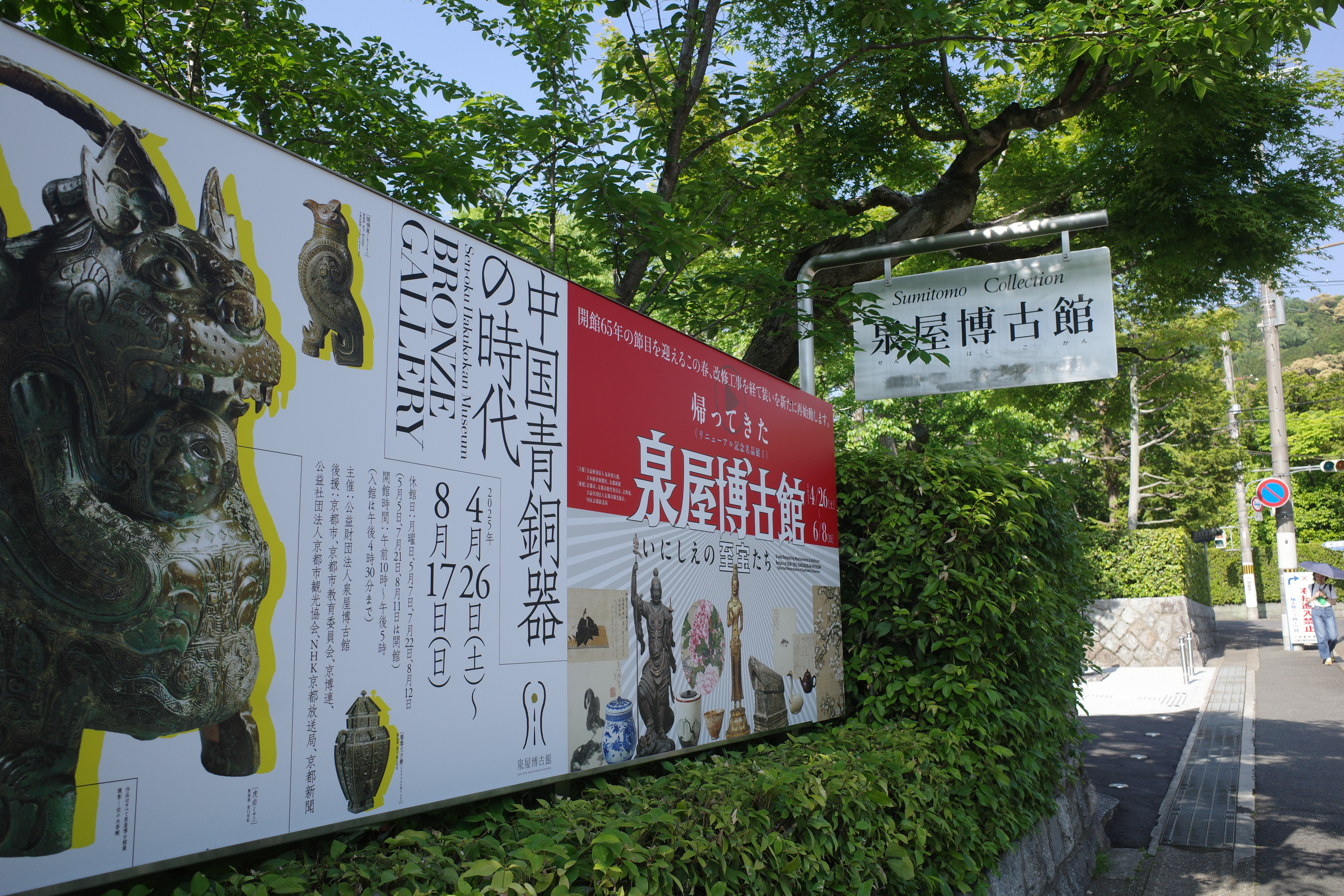 泉屋博古馆入口展览海报与日式庭院