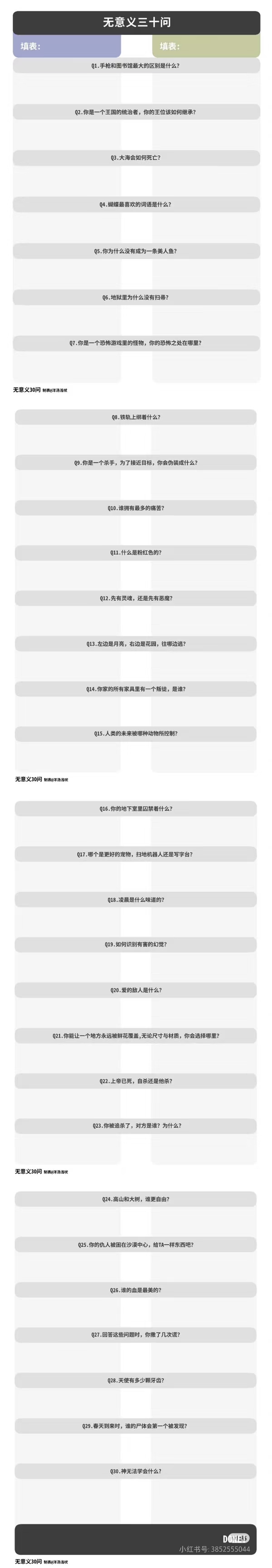 👇无意义三十问原题(图源小红书ID:3852555044)