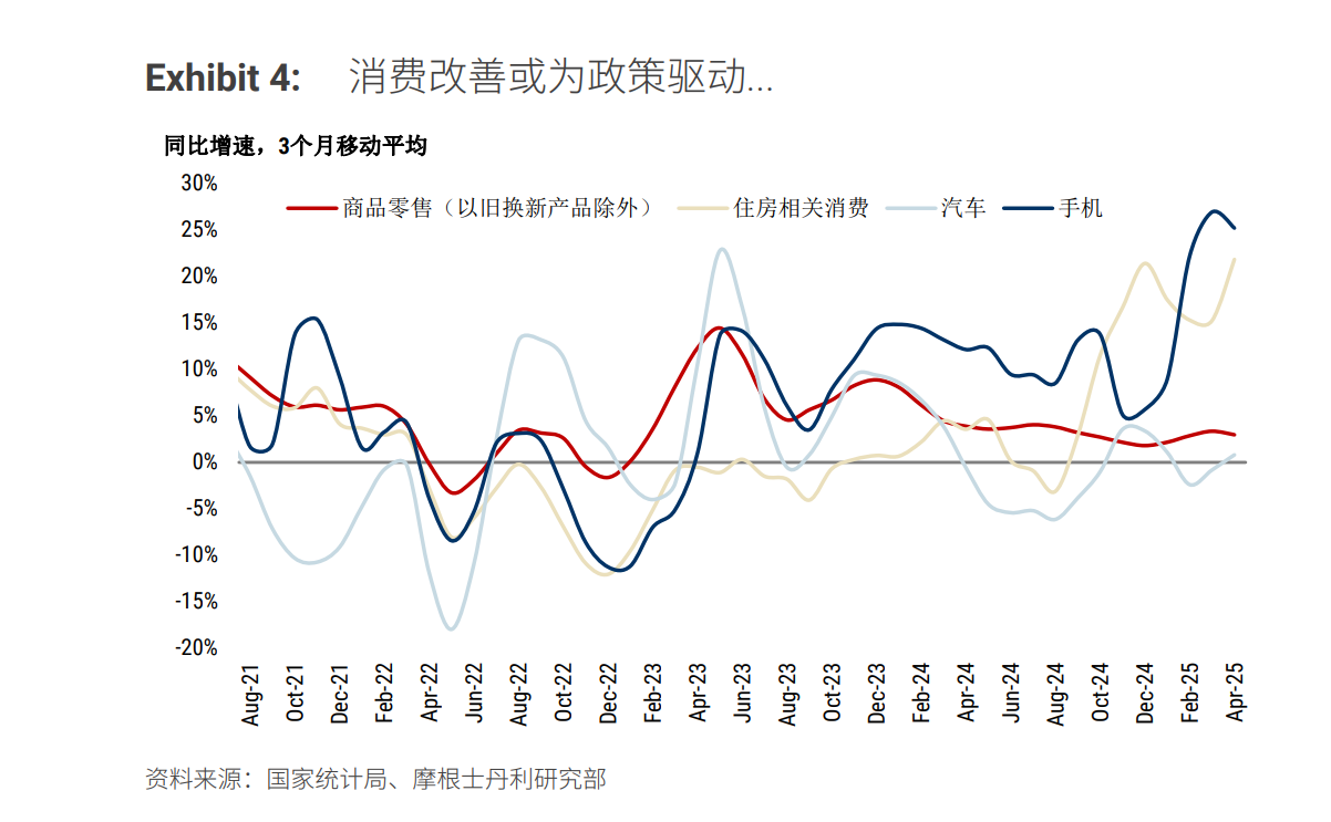 最大风险:若政策未能突破路径依赖,名义GDP或长期徘徊于3.5%低位。 - 政策方向:再平衡的瓶颈认知进步 vs 行动滞后。央行首次承认:信贷宽松在供给侧主导模式下反而加剧供需失衡(2025Q1货政报告)。但政策实操仍倾斜基建(如城市更新),消费刺激温和(以旧换新补贴仅占家庭消费0.7%)。