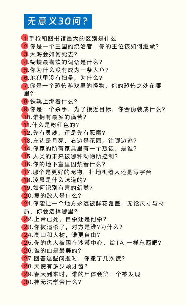 这30个“没什么用但很好玩”的问题,串起了一场性格的狂欢。不谈对错,只看思维方式的奇妙差异。