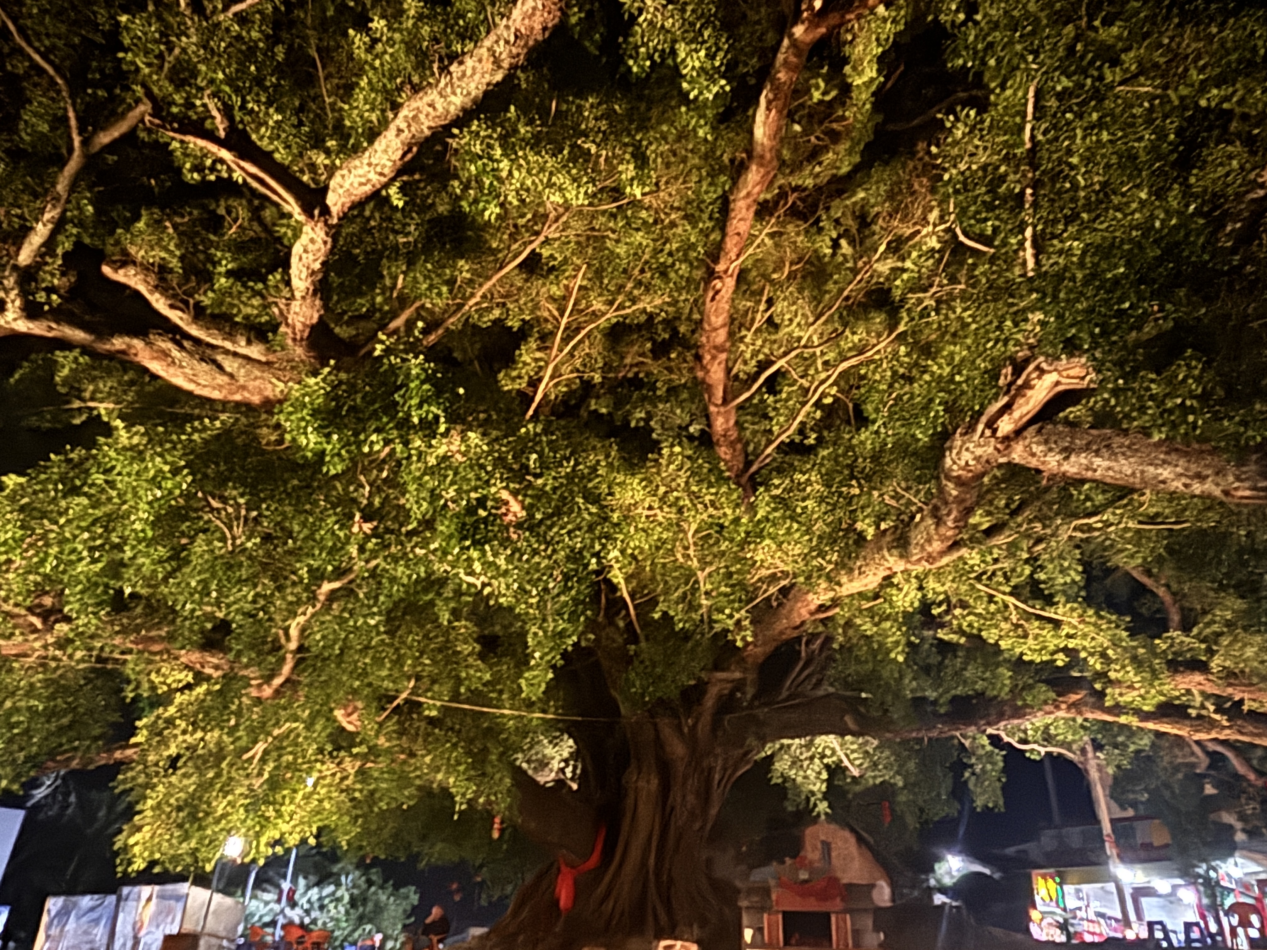 这是夜晚下的大榕树,她伫立在那里,和旁边汩汩河水相互聊天。