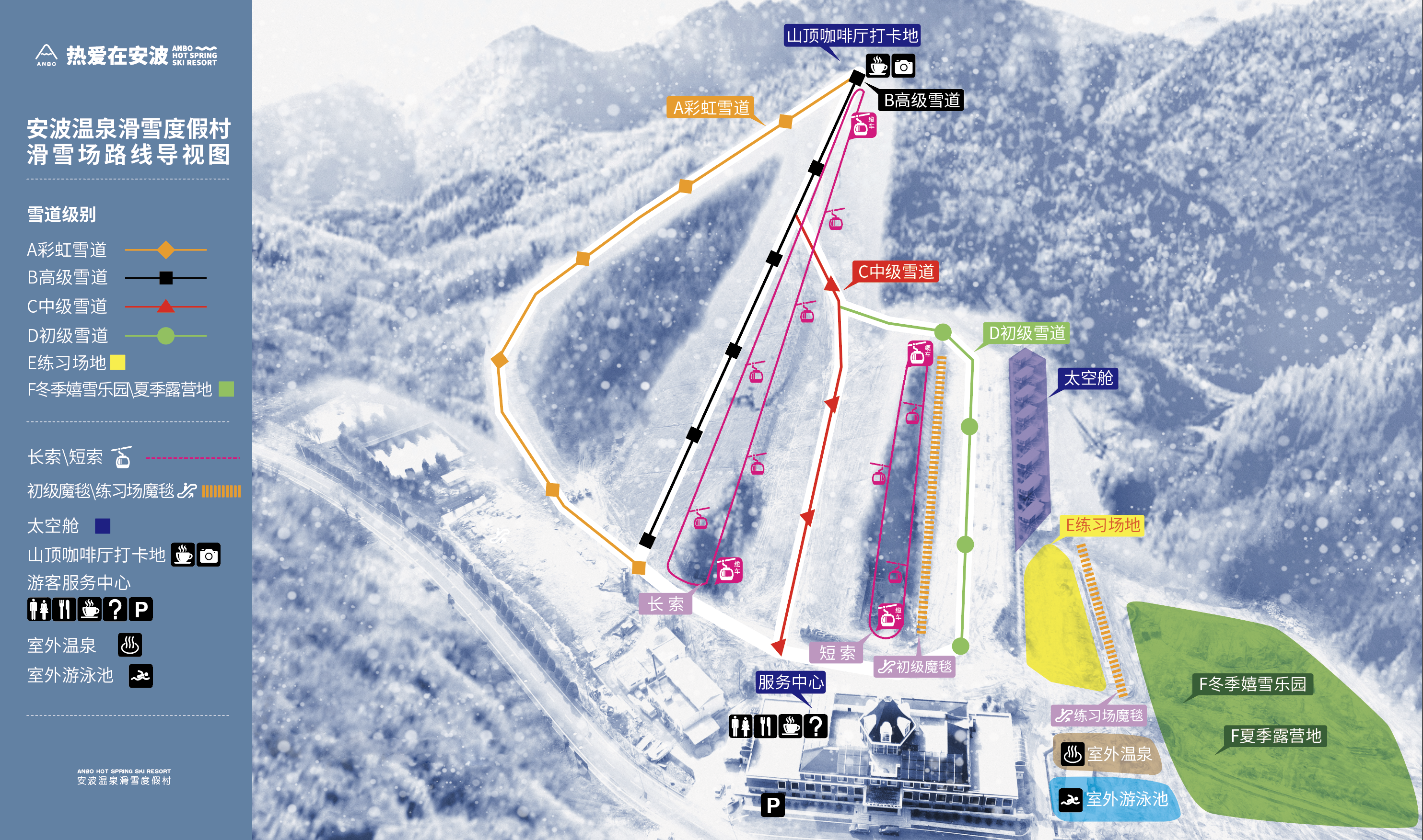 AnBo 安波温泉滑雪场所属东北地区,辽宁省大连市。是大连地区唯一一家省级滑雪旅游度假地,2022 中国体育旅游精品项目,2023 年被授予研学旅行实践基地,成功举办过 13 届大连国际(安波)温泉滑雪节。