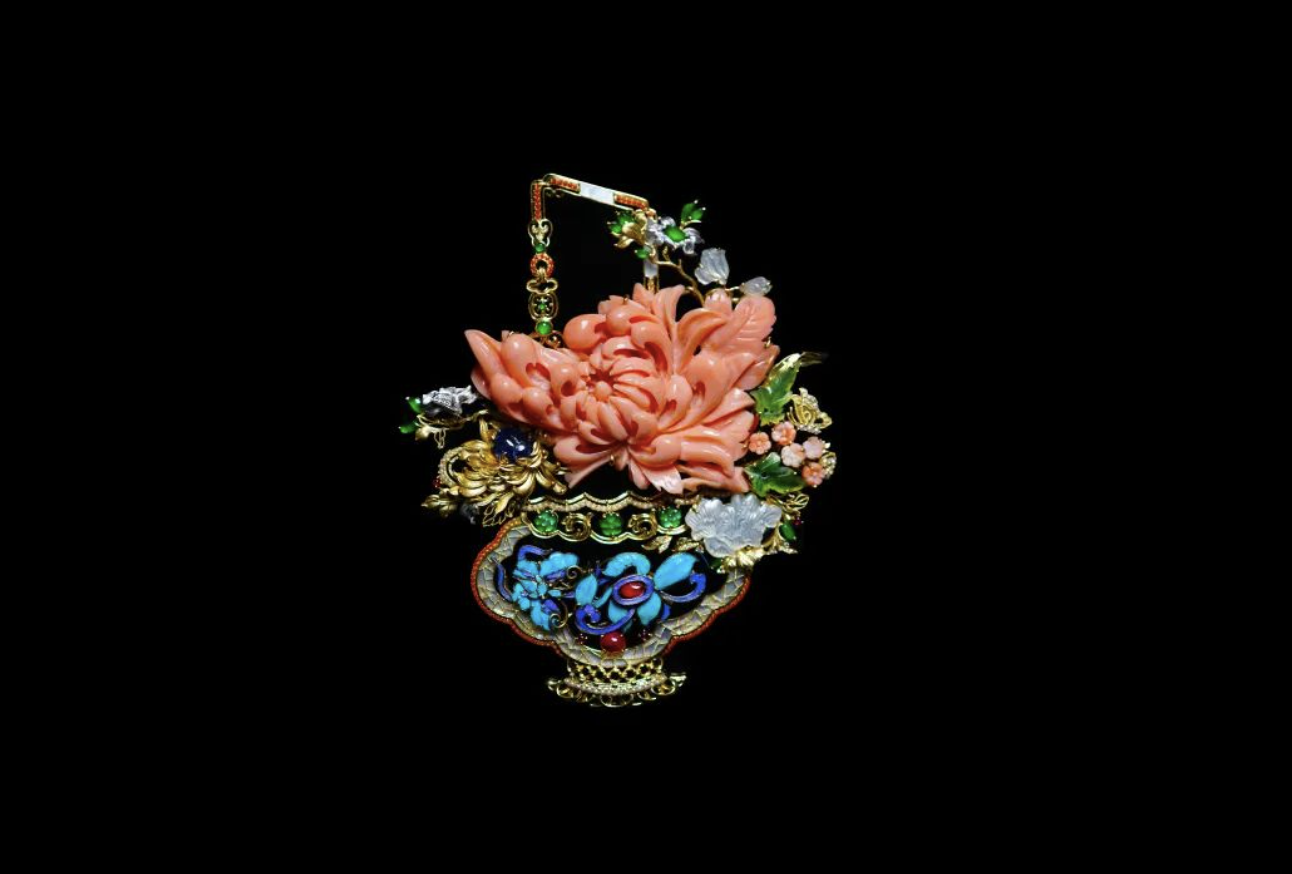 点翠、老红宝、珊瑚、翡翠、螺钿、18K金