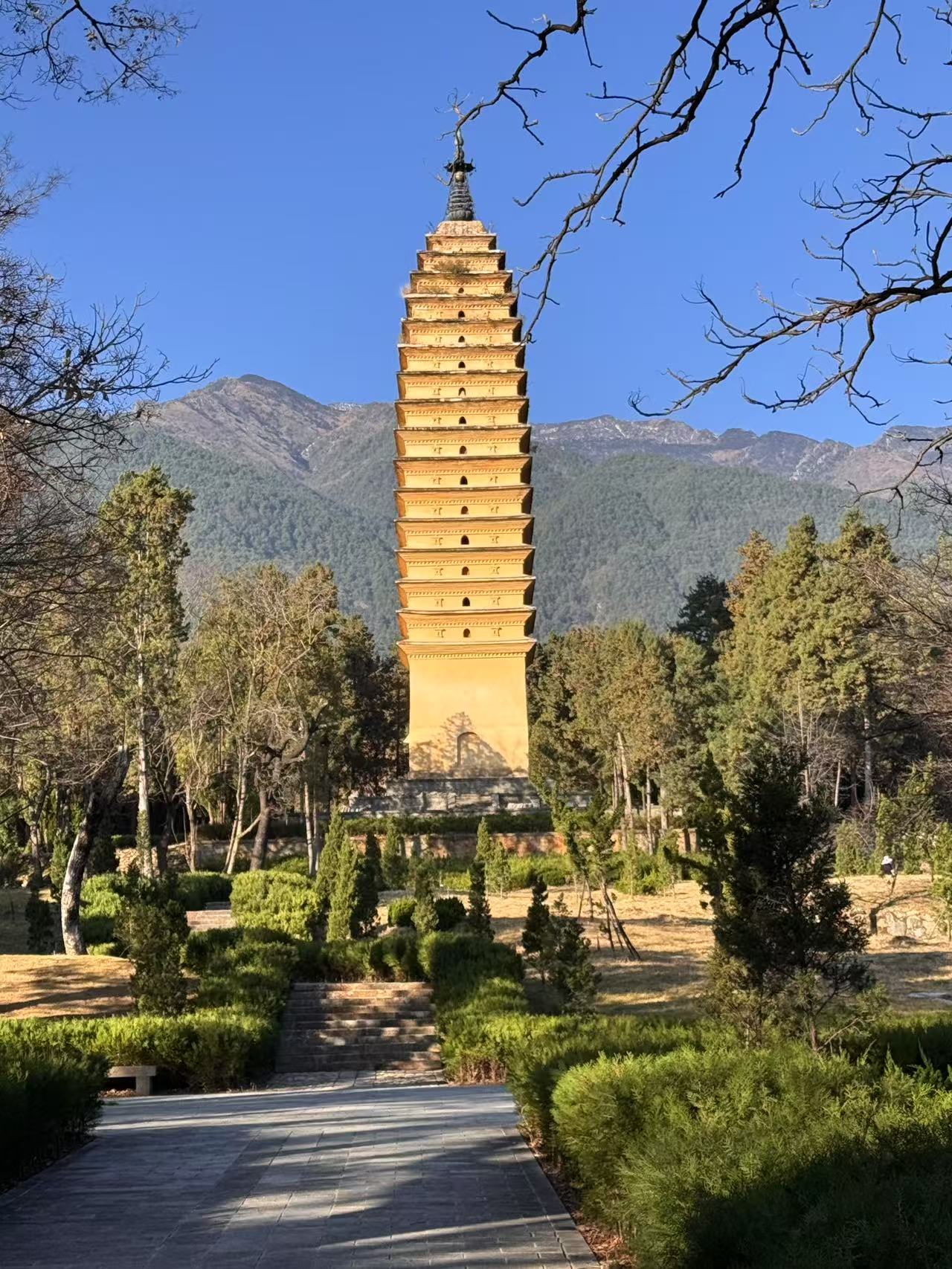 佛图寺塔和弘圣寺塔仿佛两个兄弟,一个矮壮,顶着个大大的塔刹,一个细高,颇有些秀气——也许在别处很难见到这种白白净净的塔,但来到大理,这种密檐式的“唐”塔仍矗立在这片土地上,历经王朝更替,历经山河变迁……