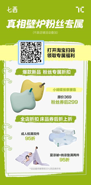 或去淘店搜【七 西 旗 舰 店】向客服报暗号“真相壁炉”领取比⑥①⑧大促更低价的优惠!