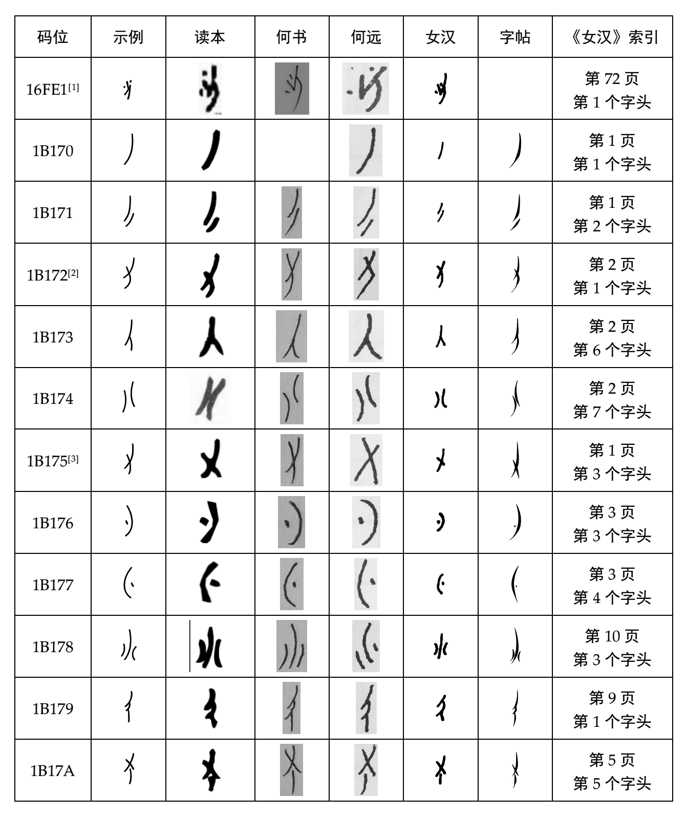 女书文献字形索引(节选)