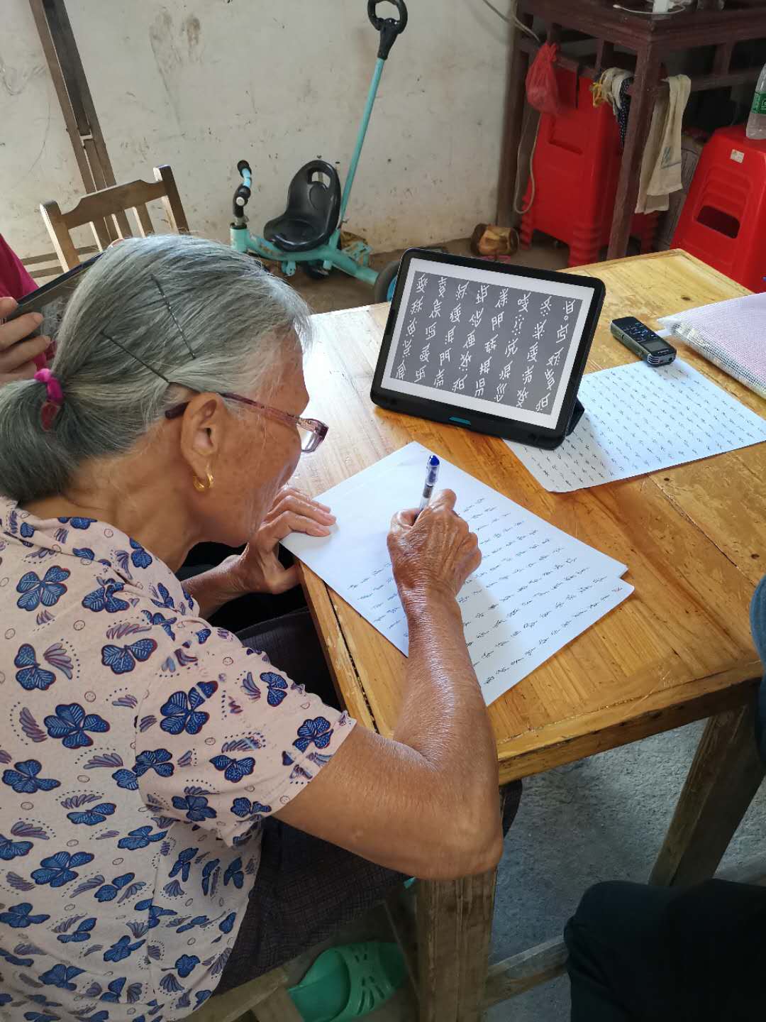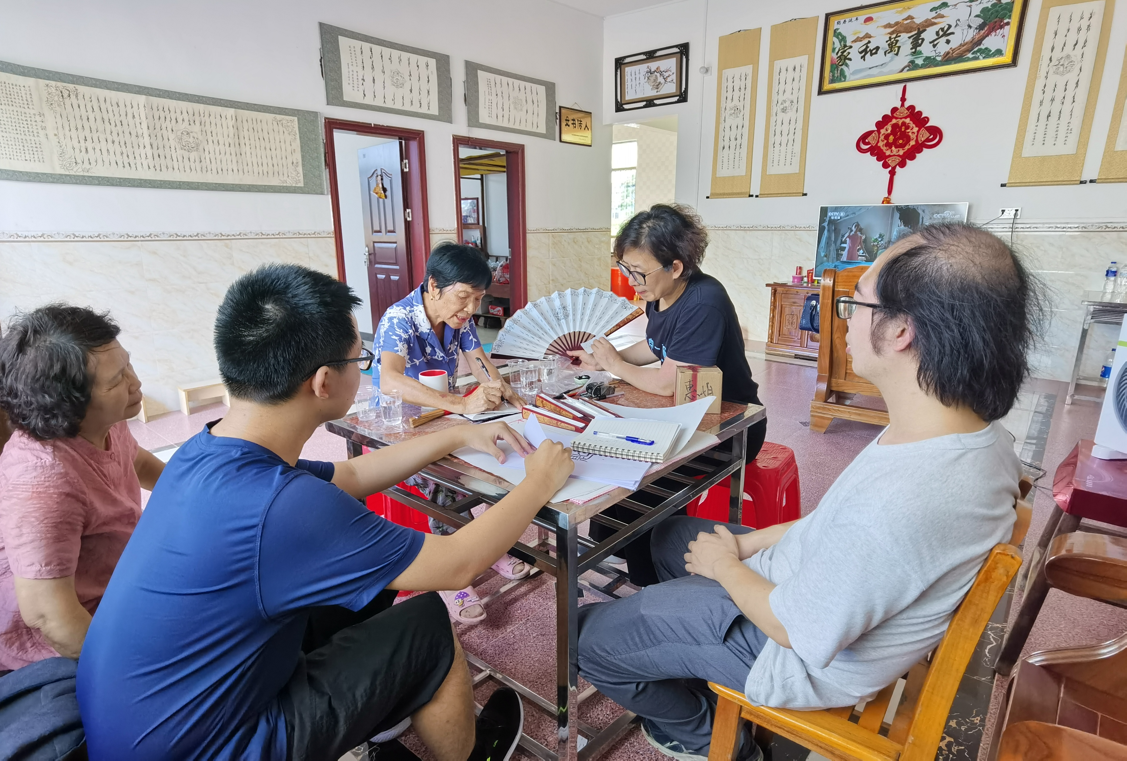 团队拜访何艳新女士,请她按照女书标准字符集书写女字