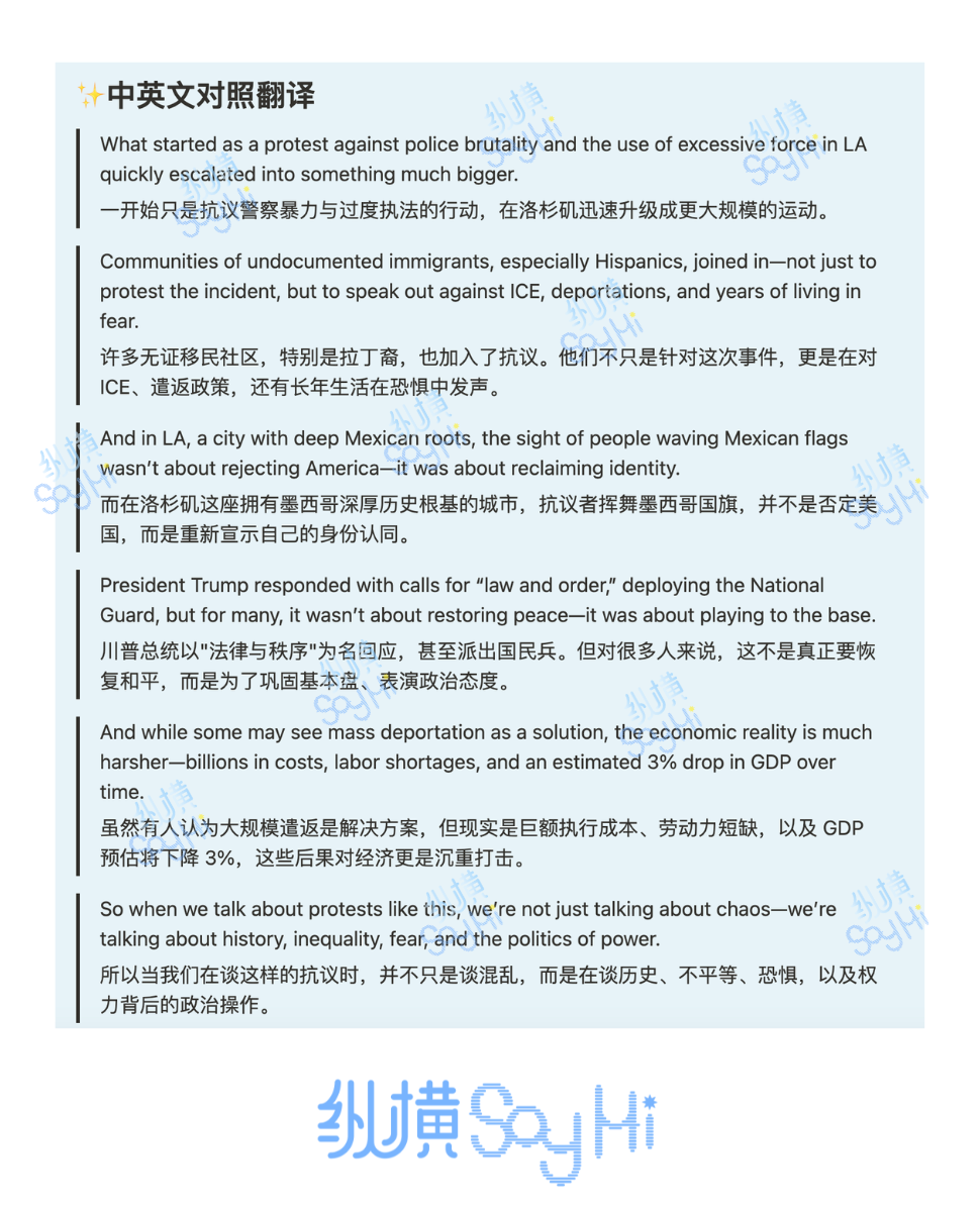 今天的这一集podcast我不仅仅想要帮大家summerize一下这次抗议暴动的前因后果,我同时想带大家往更深一层去看:这次不只是警察执法过当的问题,背后其实牵扯到LA这个大家所说的City of Angels、Lalaland天使之城的历史、文化、移民政策和政治操作。同时介绍一些这个话题相关的英文,最后读一段有关这件事情的英文让大家磨磨英语耳朵,那我们就开始吧~!