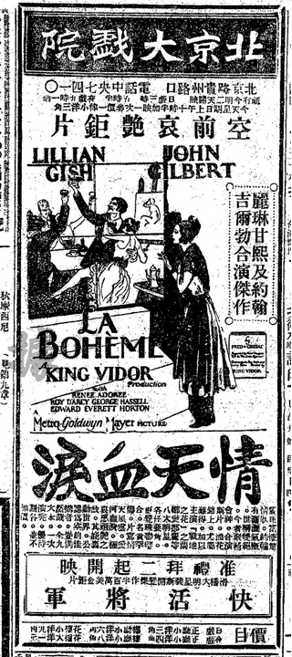 - 申报 19280527 第19826號第31版 北京大戏院快活将军预告