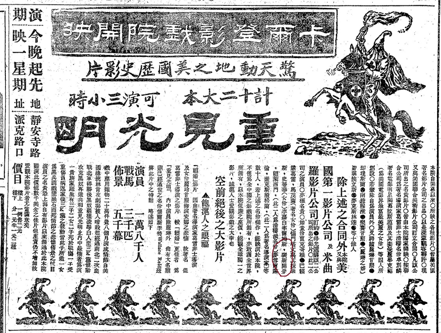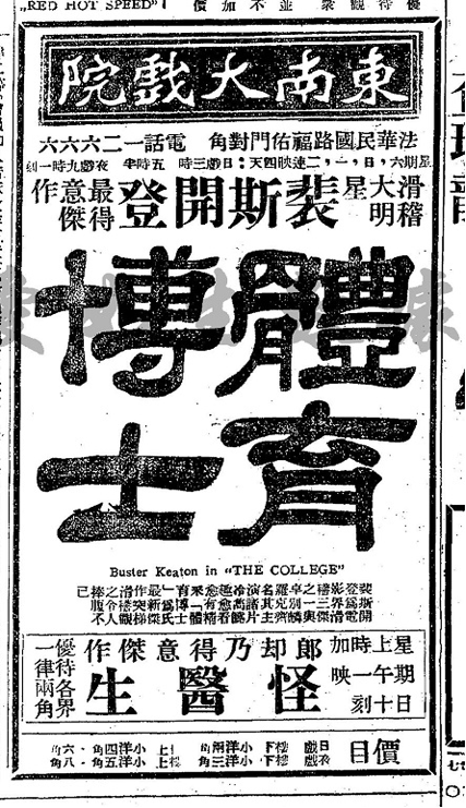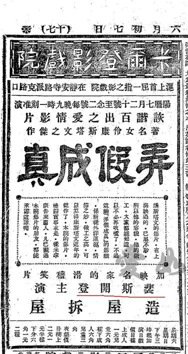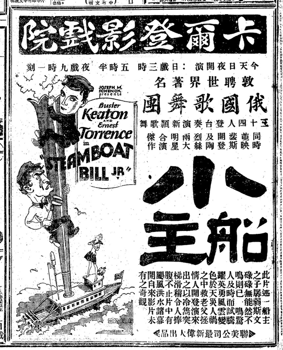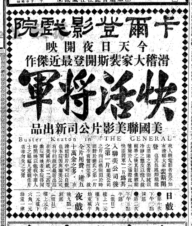 - 1927年 卡尔登影戏院:“滑稽大家裴斯开登最近杰作《快活将军》”