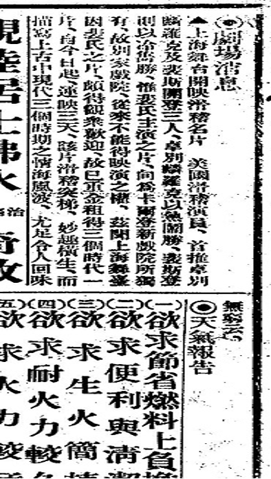 - 申报 19280412 第19781號第22版 上海舞台开映滑稽名片