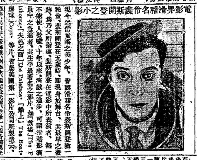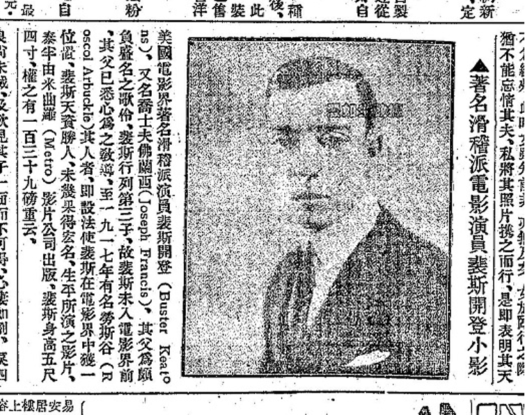- 申报 19230426 第18018號第17版 电影滑稽界名伶裴斯开登之小影