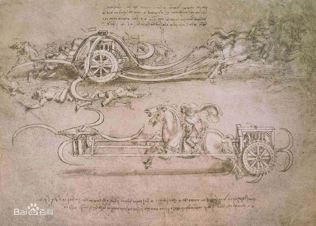 插图2- 假想图-库纳克萨战役镰刀战车,达芬奇设计的旋转镰刀武装战车