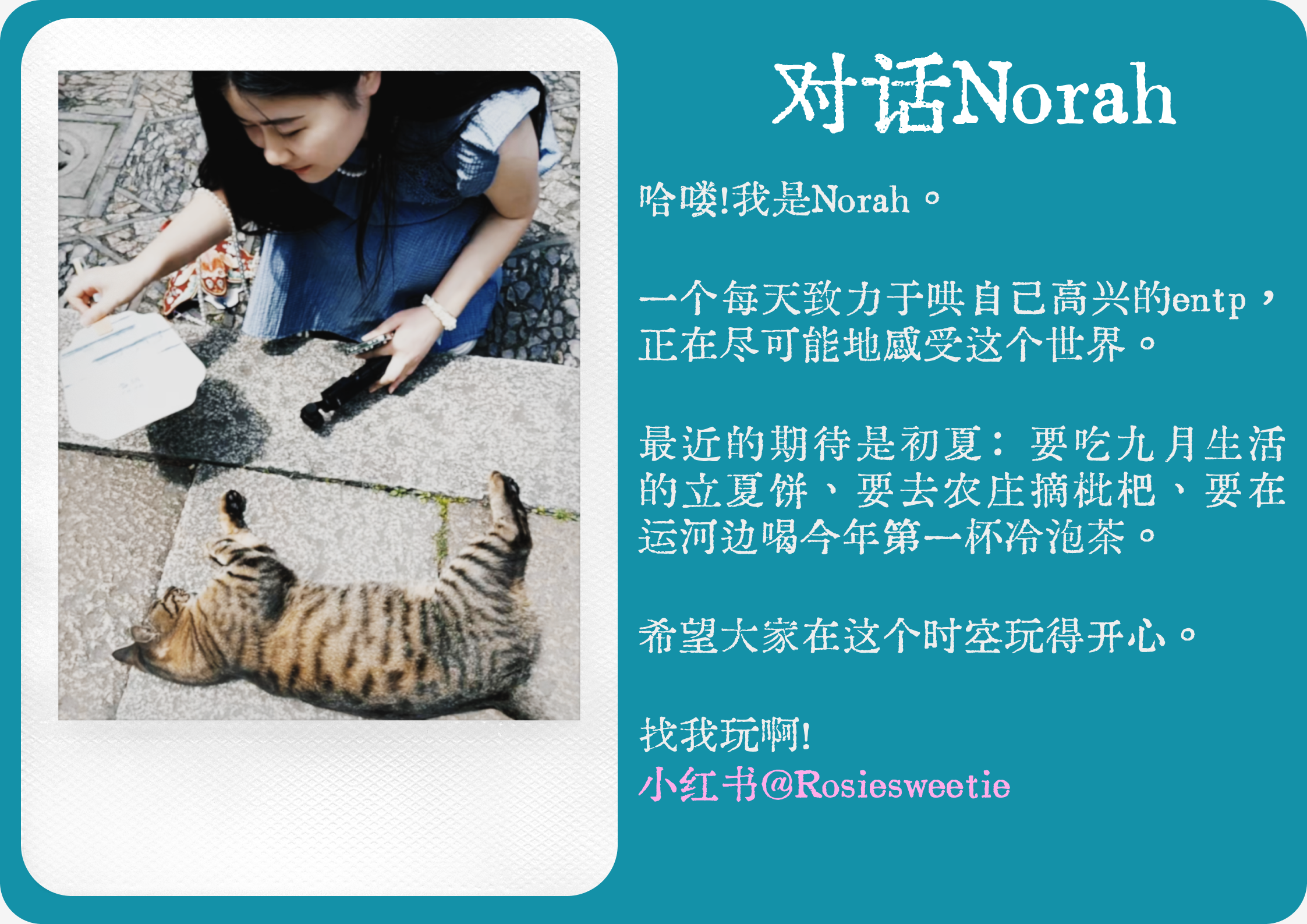 感谢Norah,和她聊天非常开心!她是很好的好人。我们是北管南N cp! (磕了)