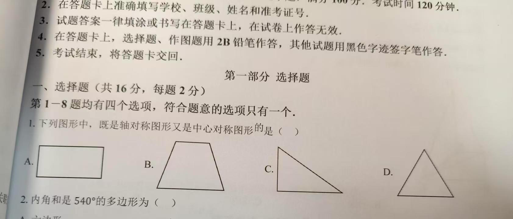 中心对称图形的对称轴互相垂直,或是正着看倒着看都一样的图形,所以这题选A锅巴大王