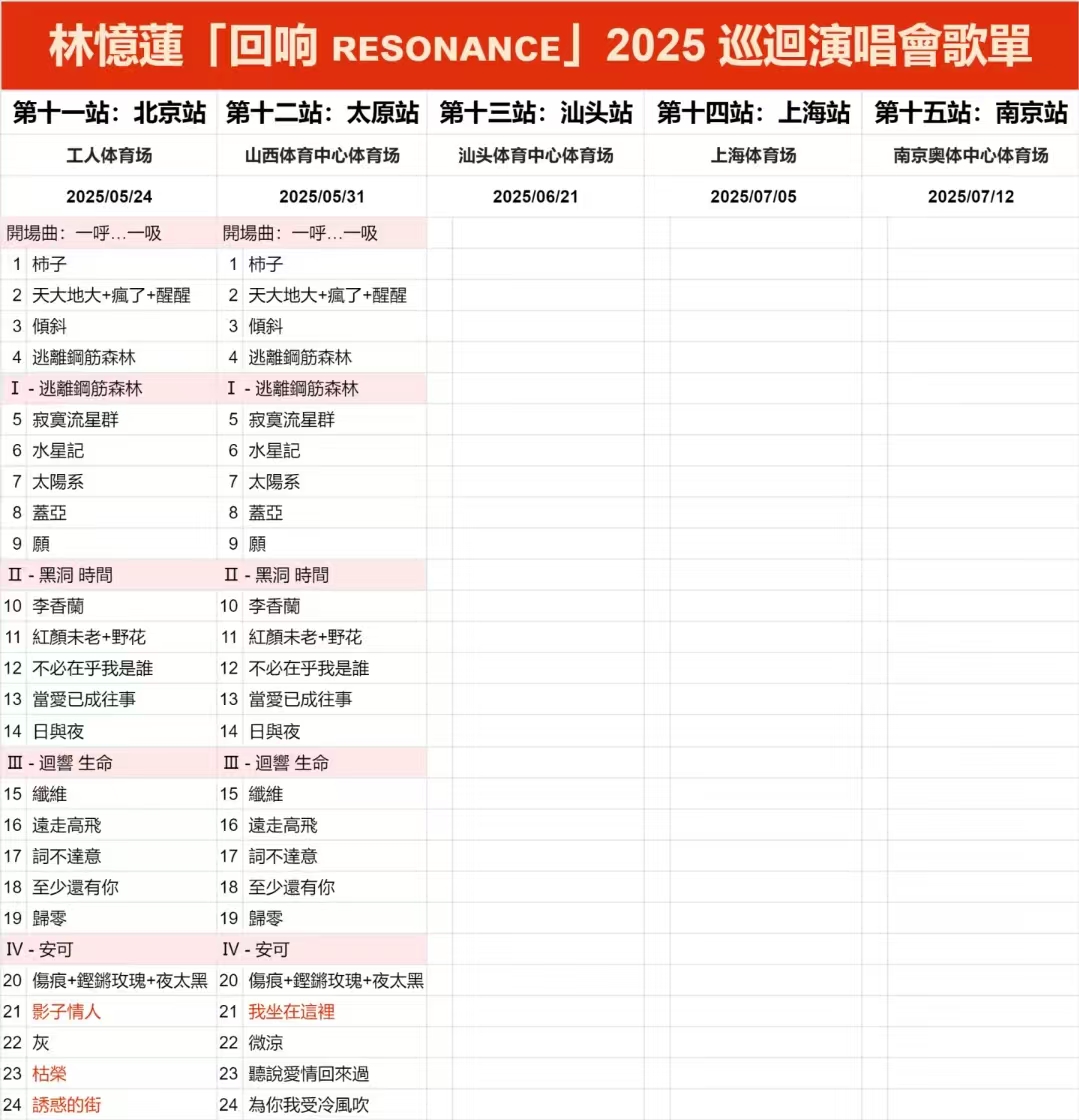 巡演歌单整理来自小红书用户 马孔多在下雨