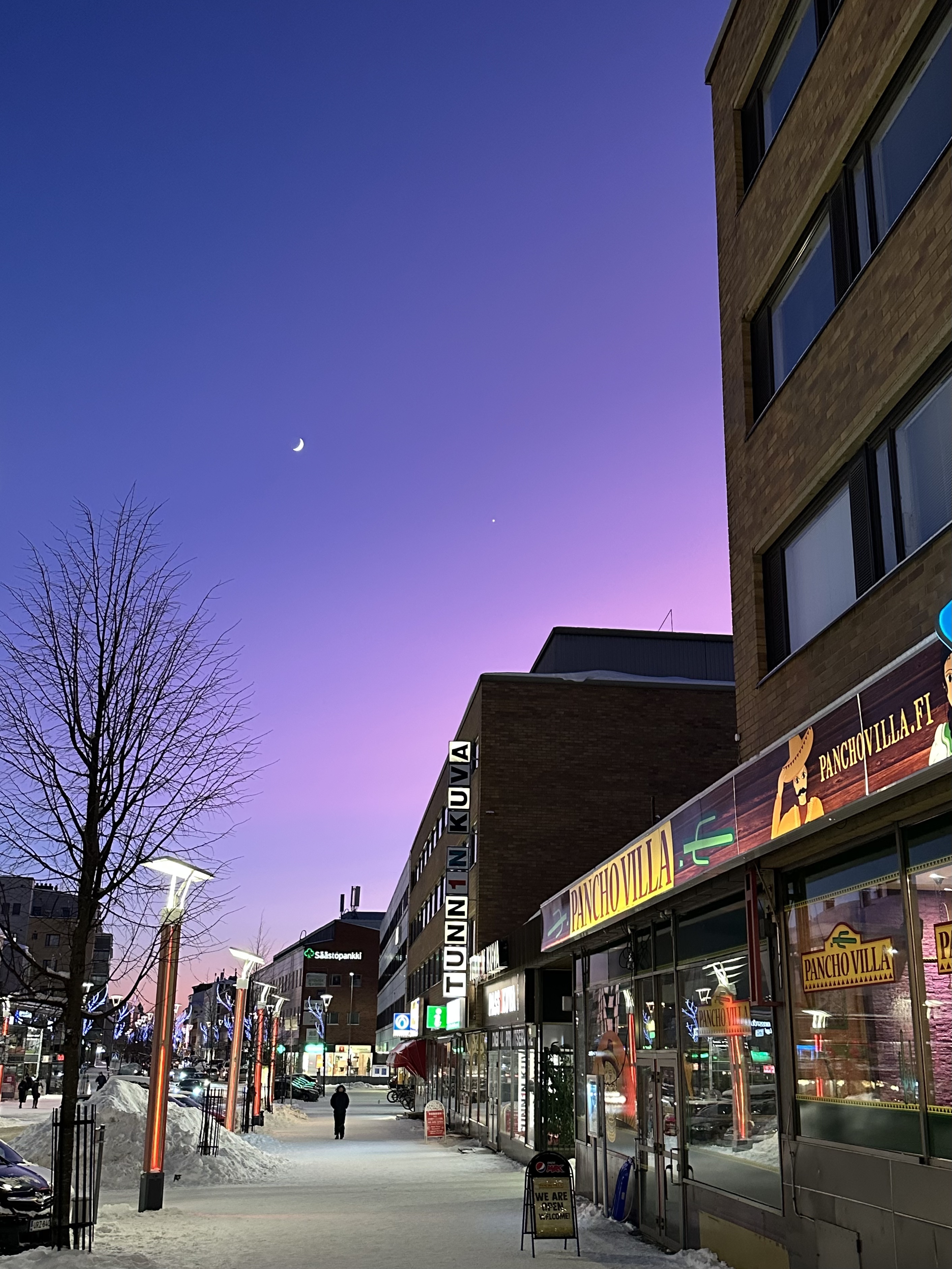 从商场出来看到的蓝紫色天空,纯净又迷人↓