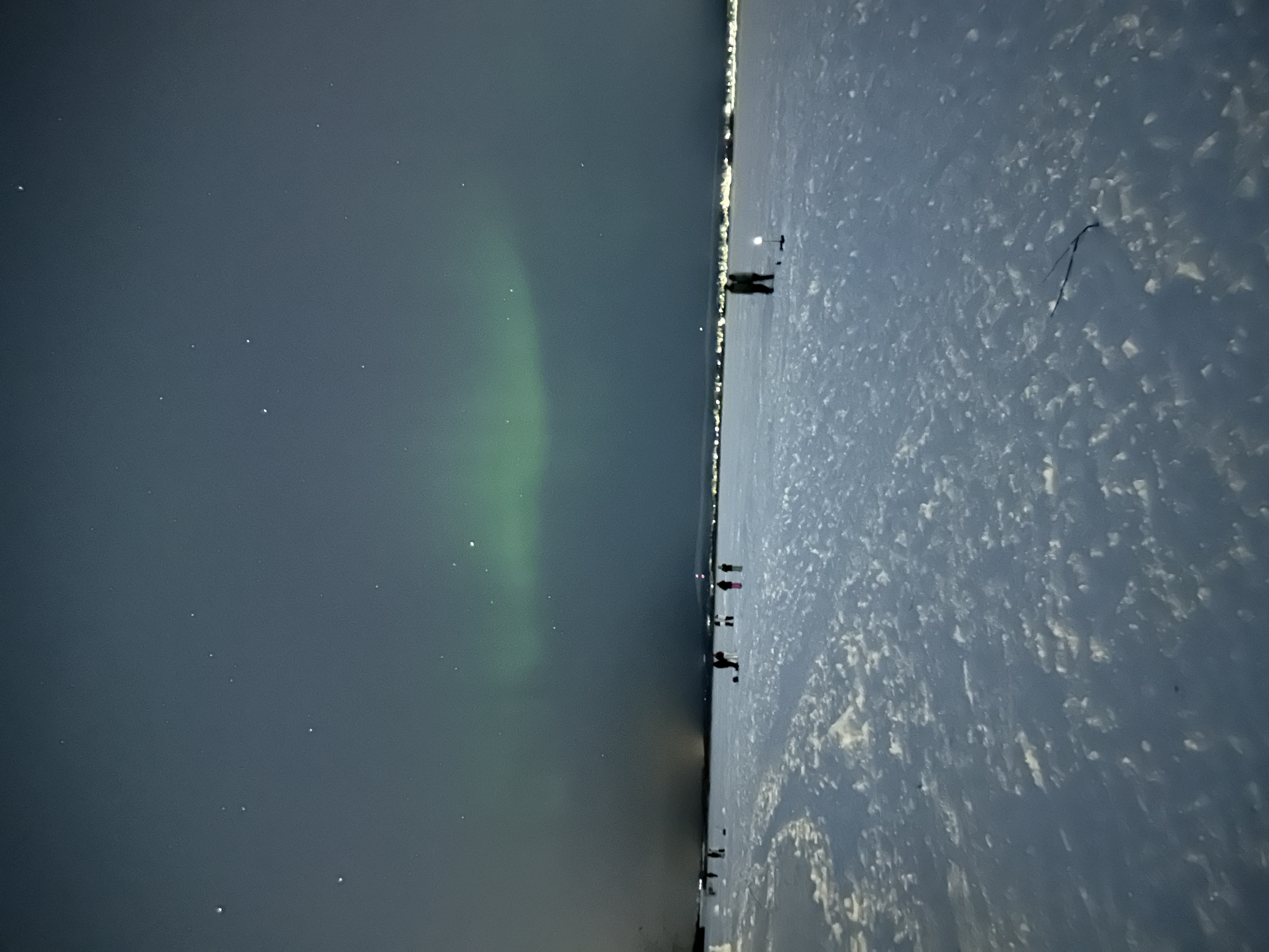 果果用手机拍到的极光,肉眼看是灰白色的↓