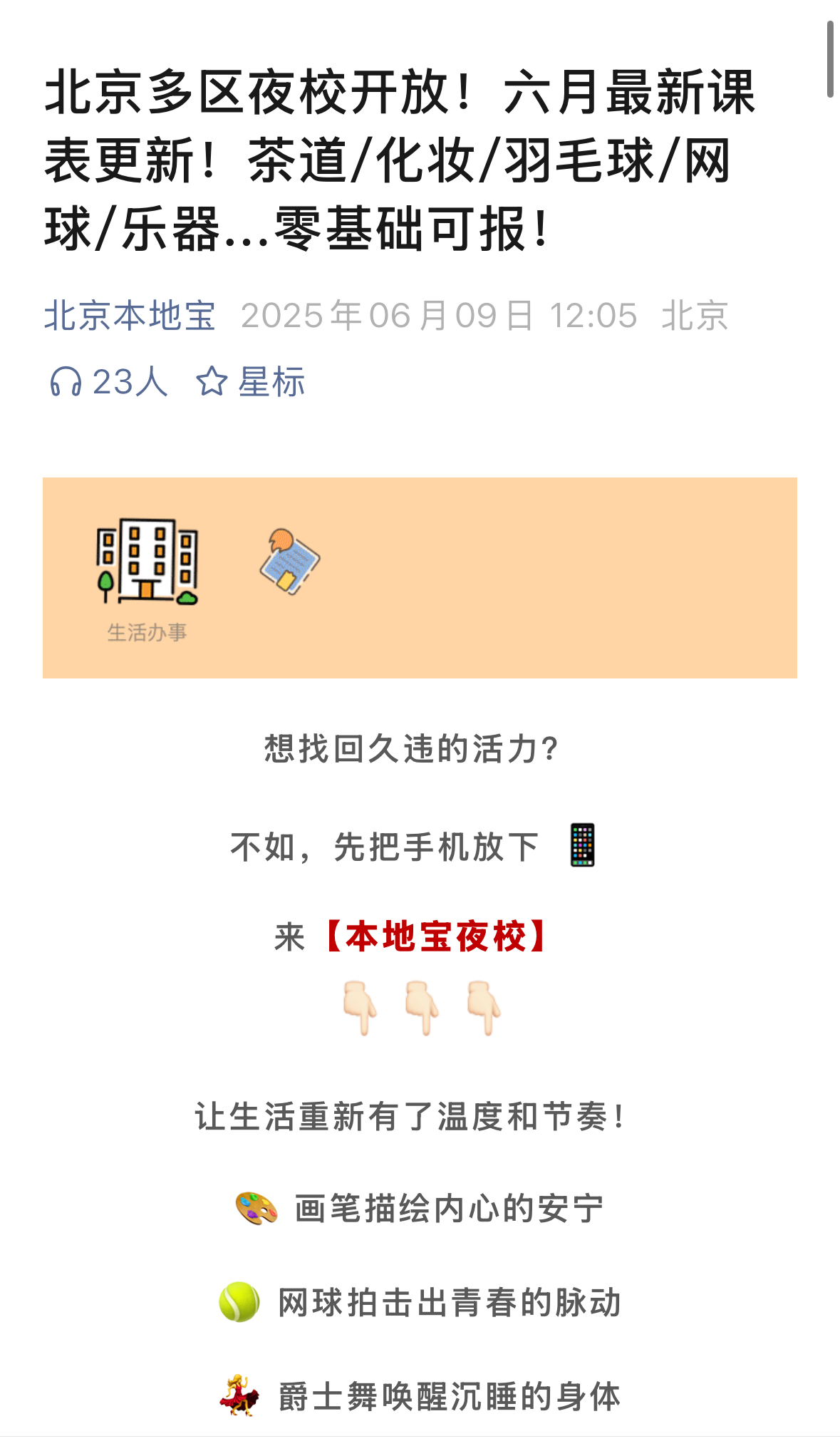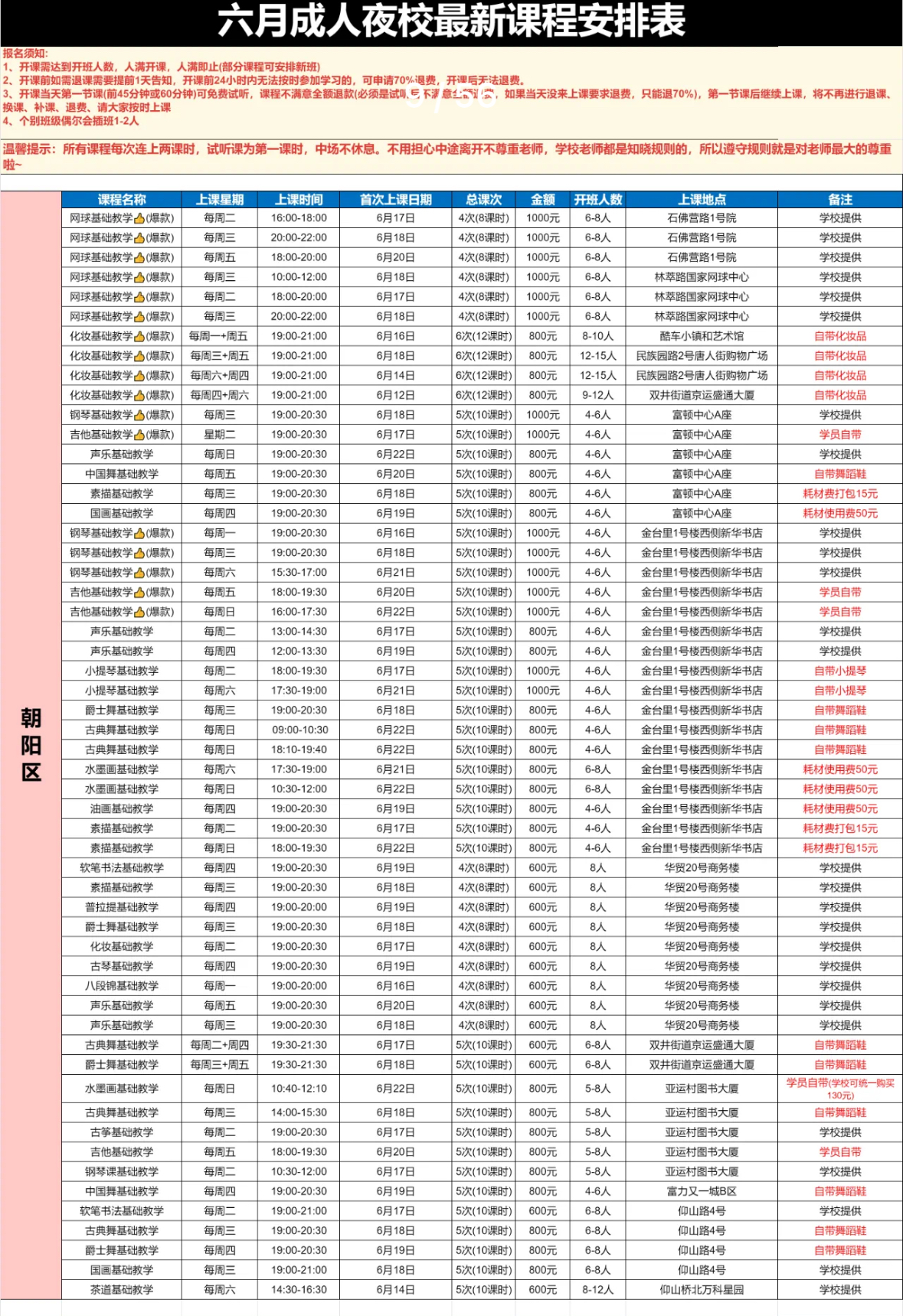 -北京近期夜校课表